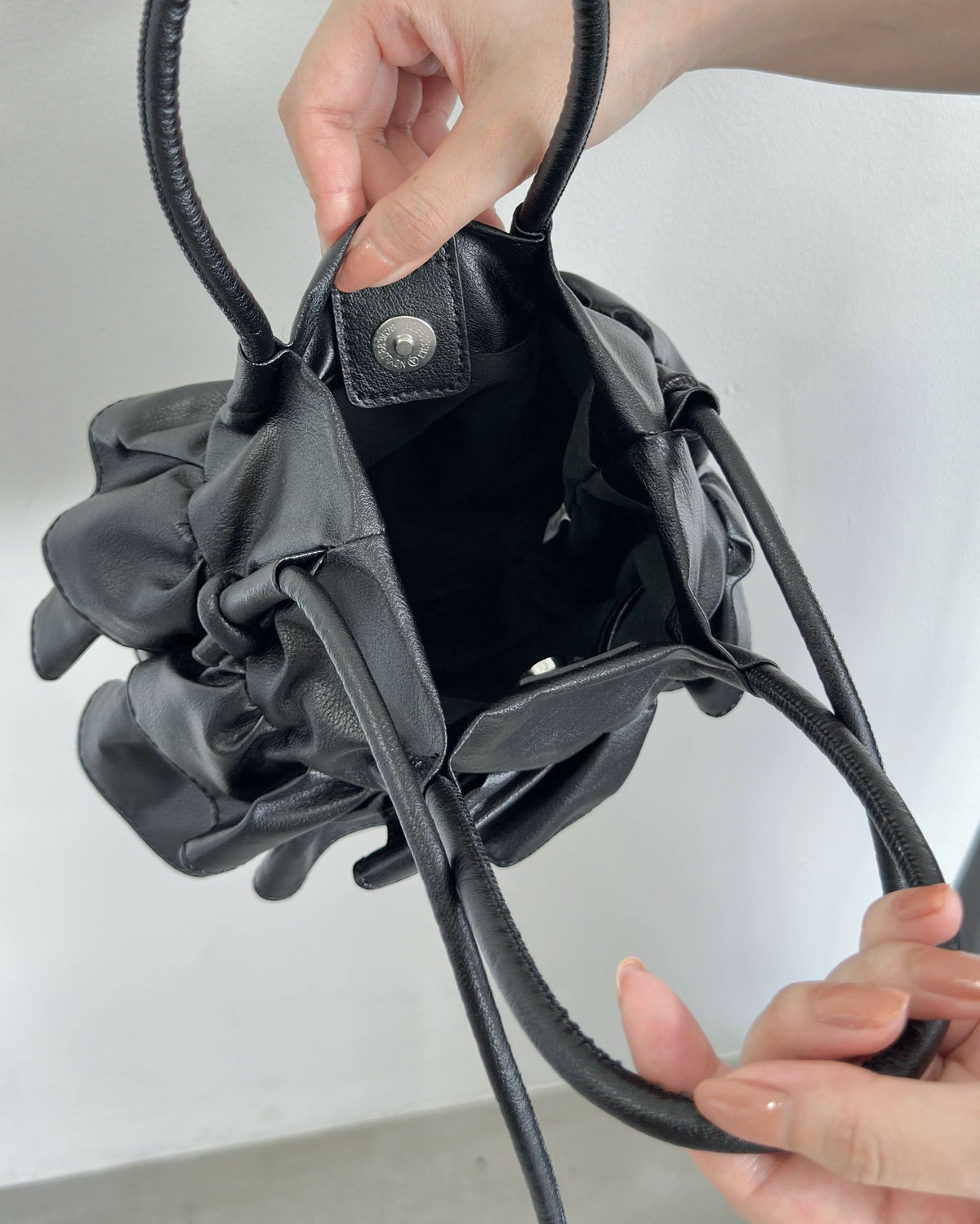 巾着付きマットタッチバケットバッグ