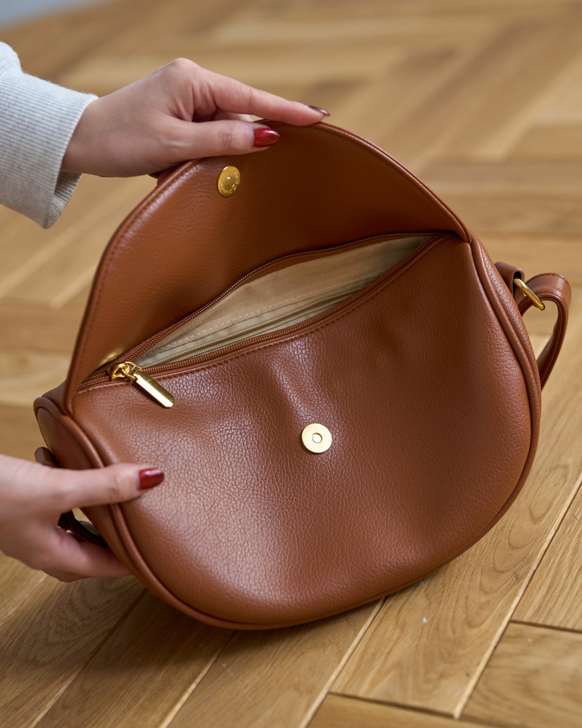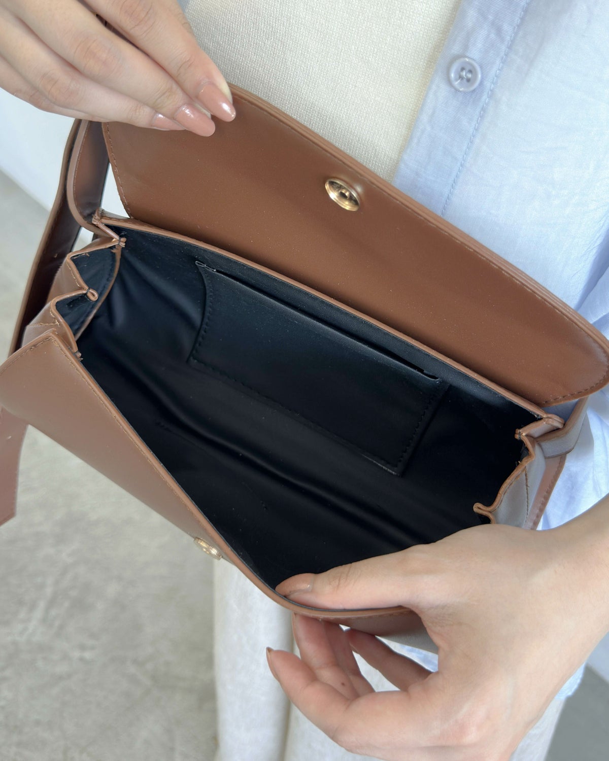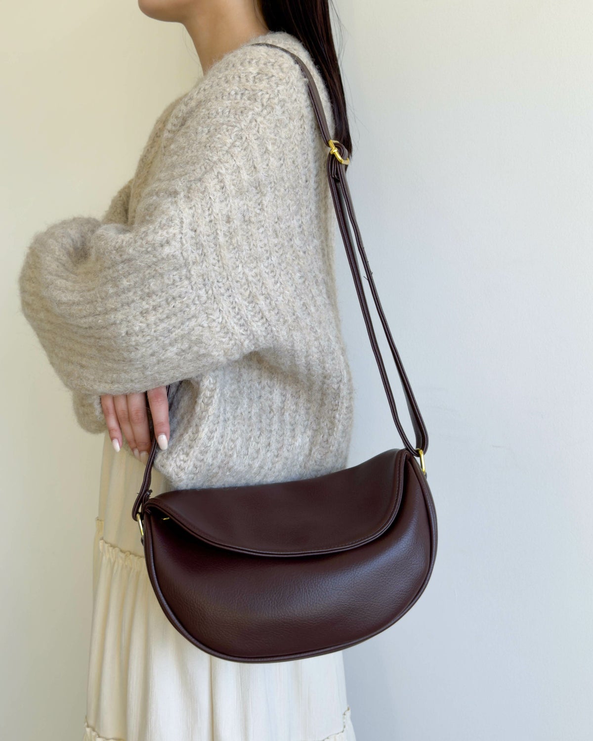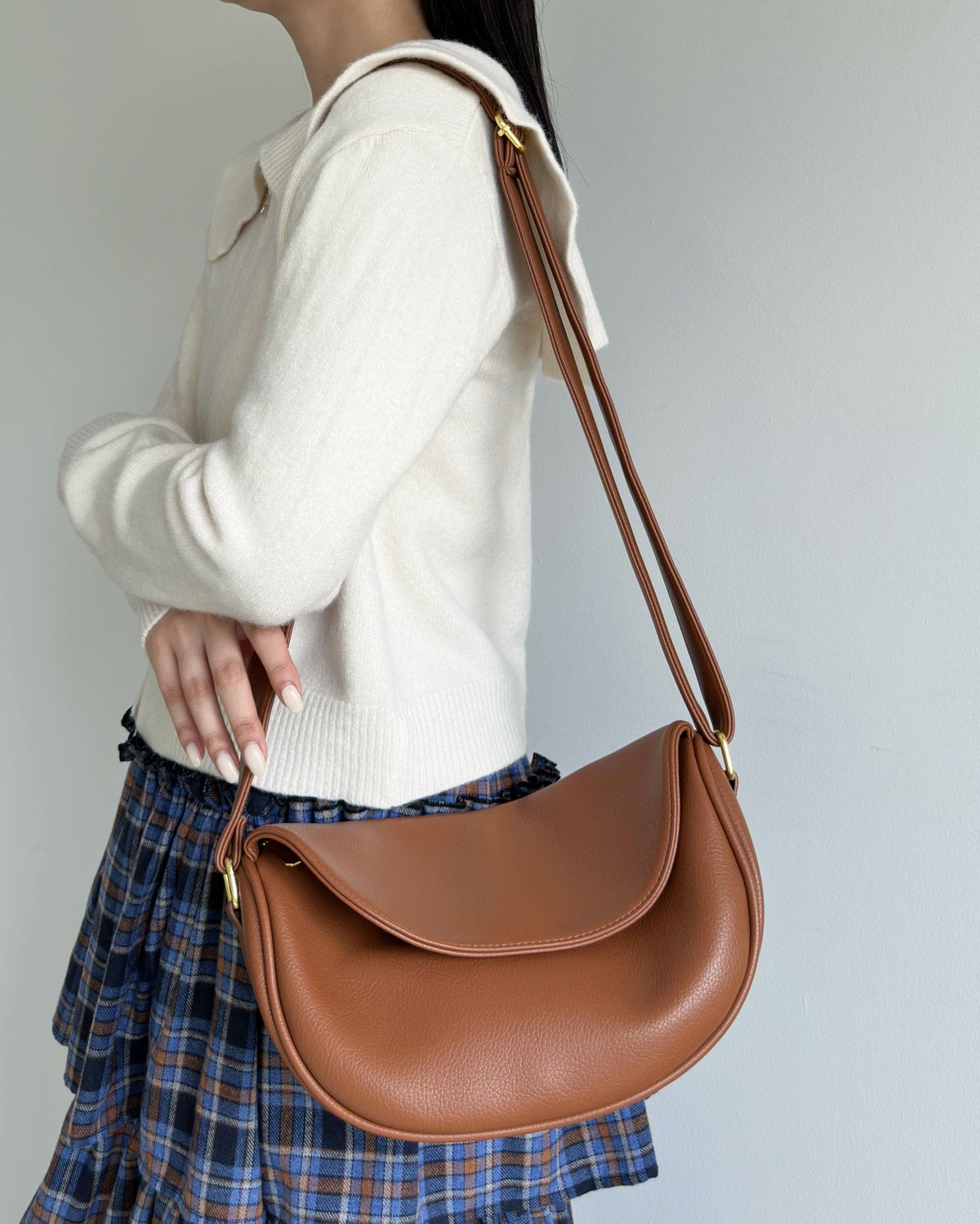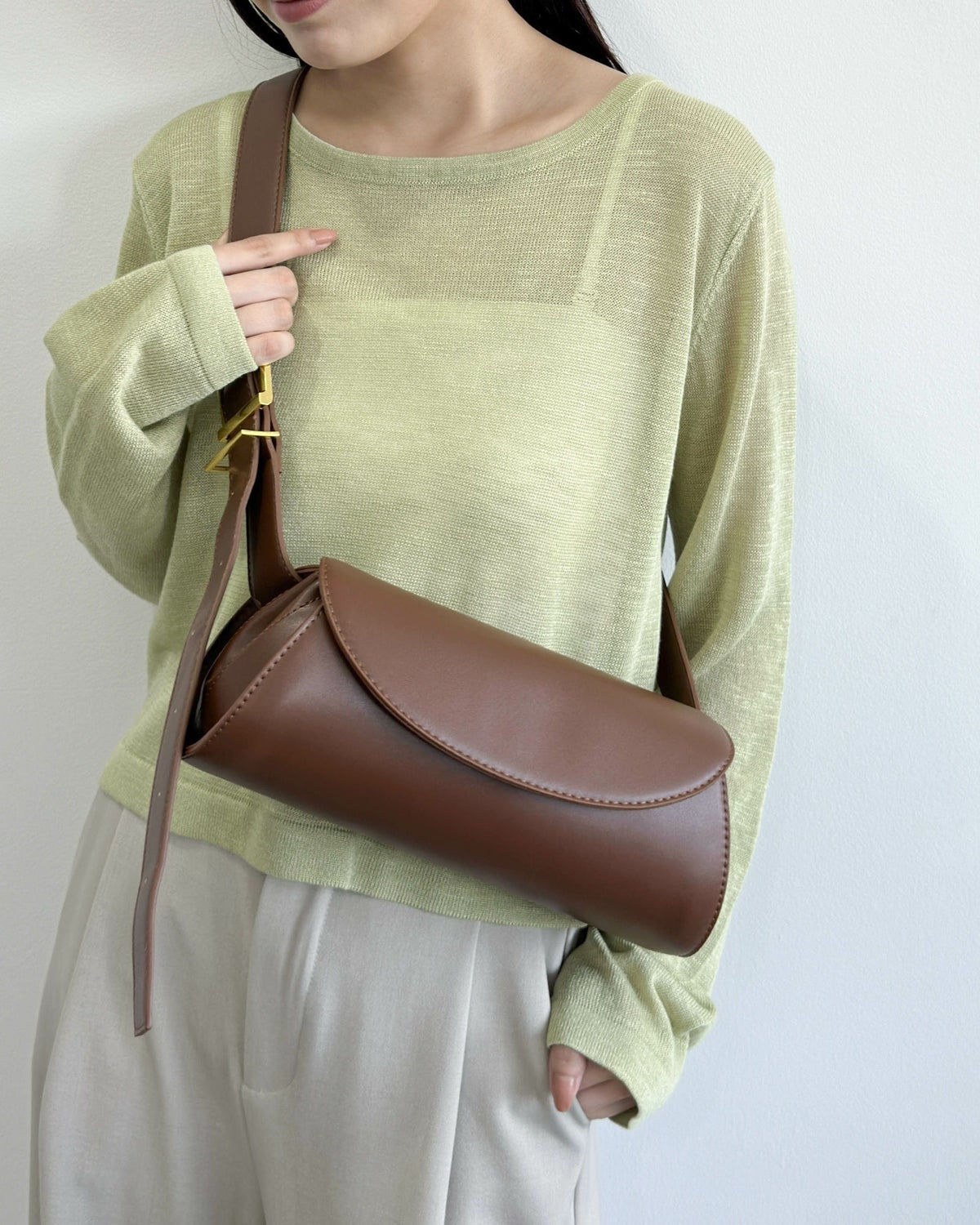 ハーフムーン型フラップショルダー