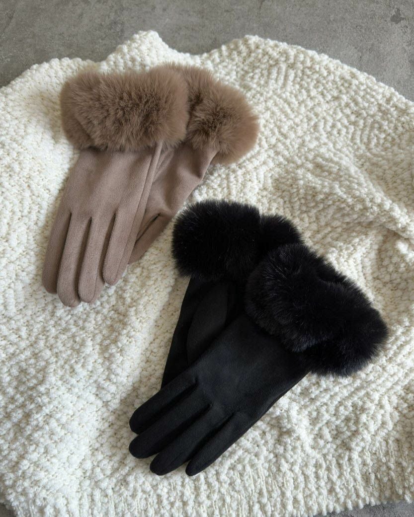 【タッチパネル対応】裏起毛フェイクファーグローブ