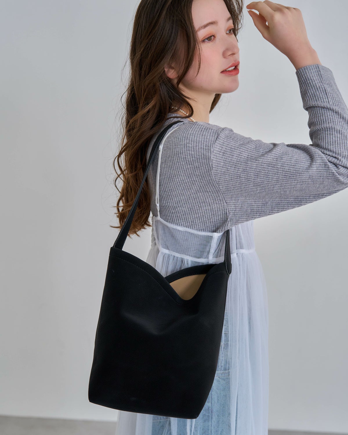 シボ加工フェイクレザーショルダー