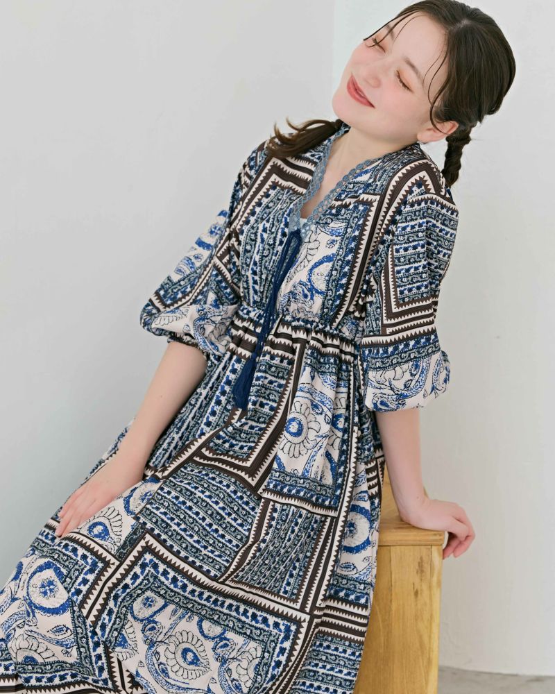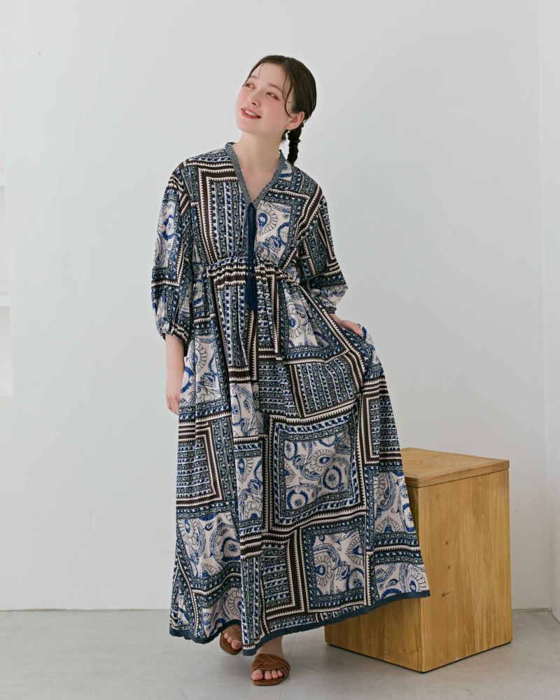 タッセルリボンエスニックマキシワンピ