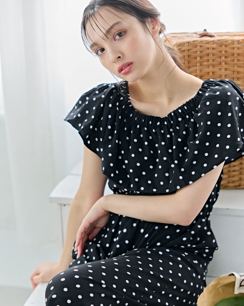 ドットフリルサロペット