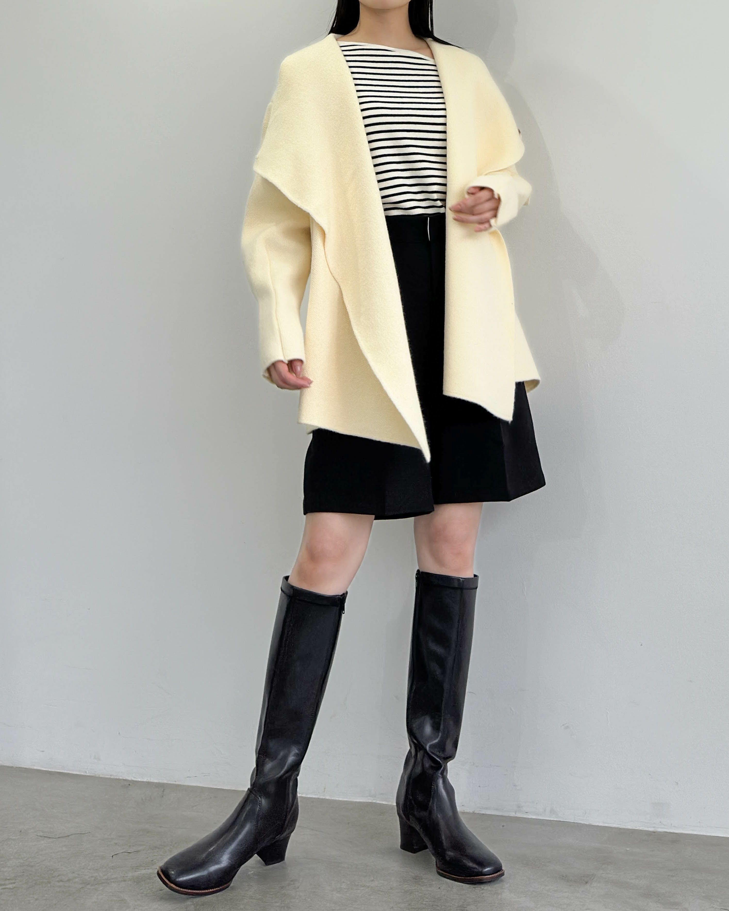 ぽわん袖ノーカラーフレアコート