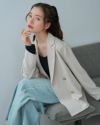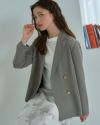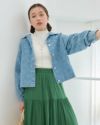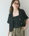ノーカラーフレアスリーブフェイクレザーブルゾン