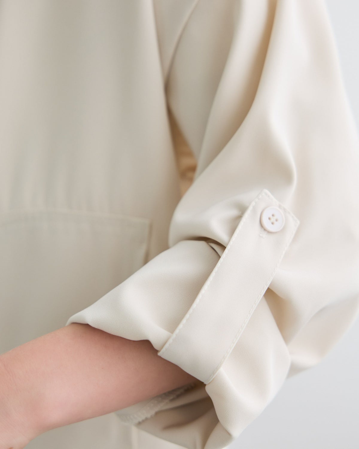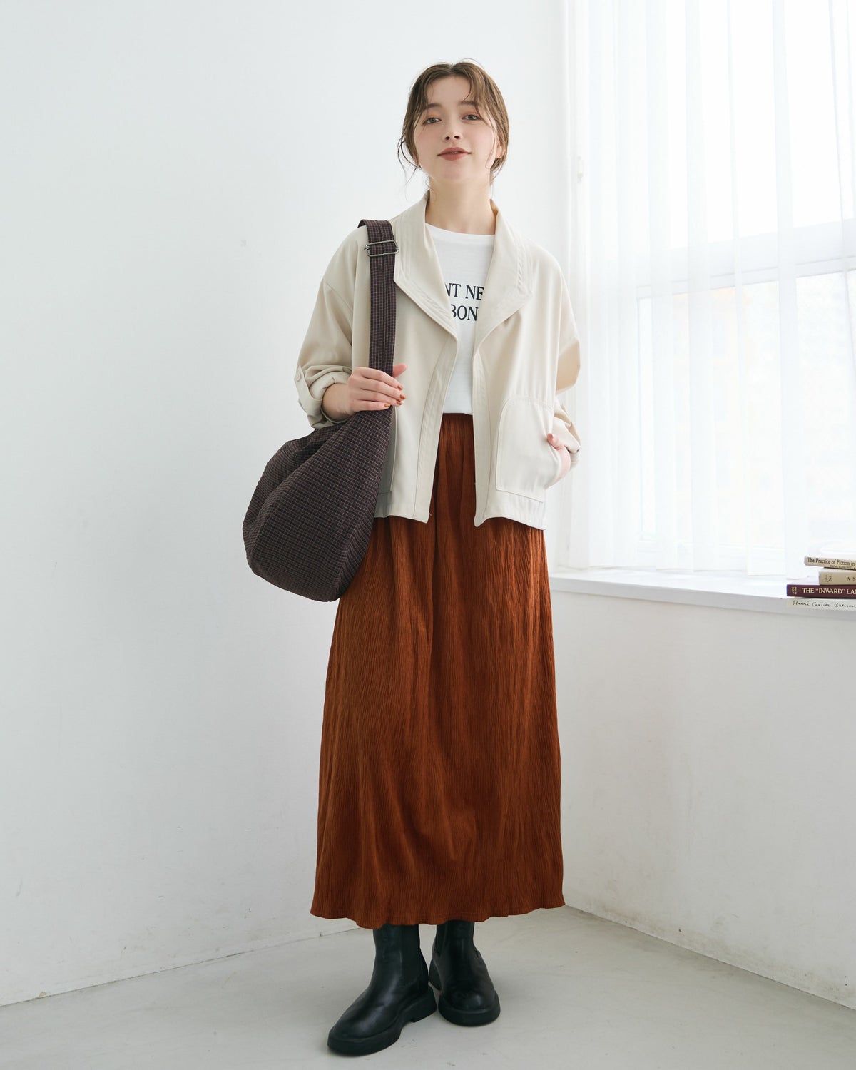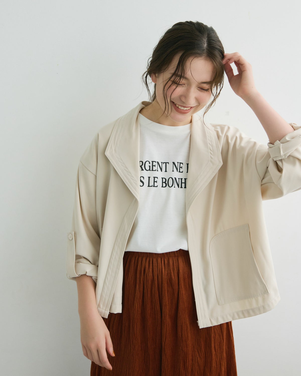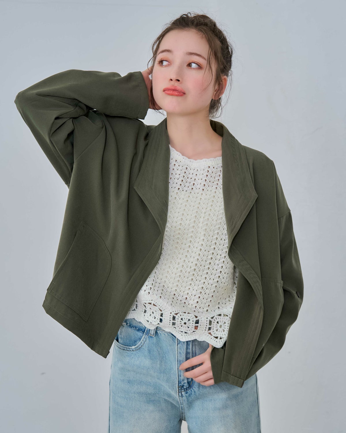 ノーカラーフレアスリーブフェイクレザーブルゾン