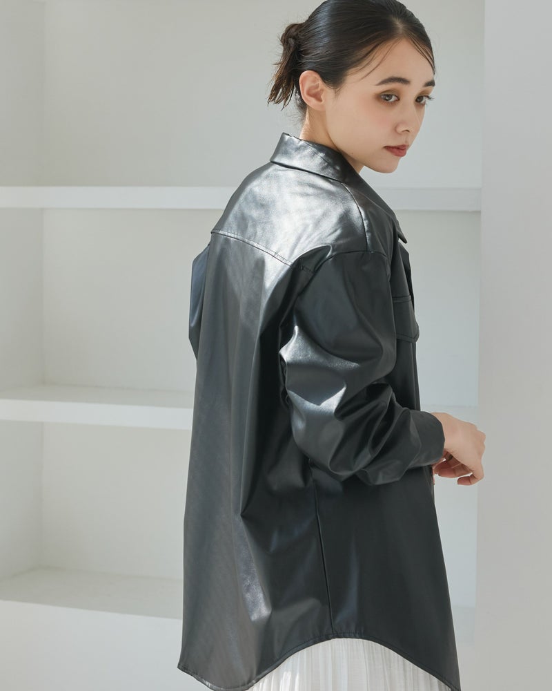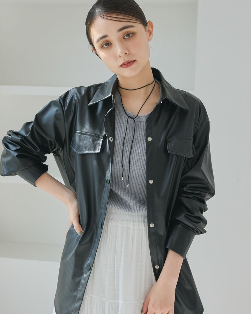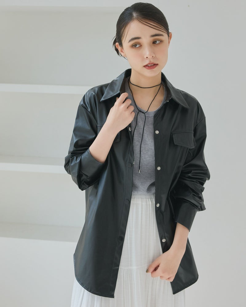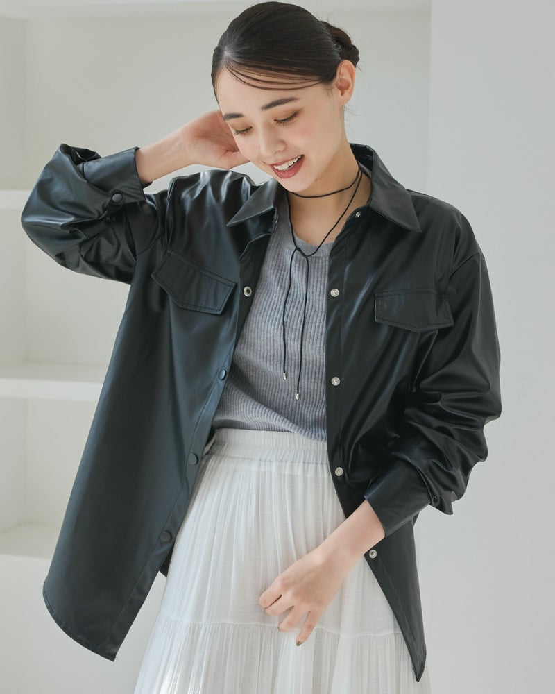 オーバーすぎない感じの着こなしになりました。アウターにしたりパーカーの下に着たり大活躍しそうです。フェイクレザーの臭いが気になって、臭いを飛ばすのに苦労しました。