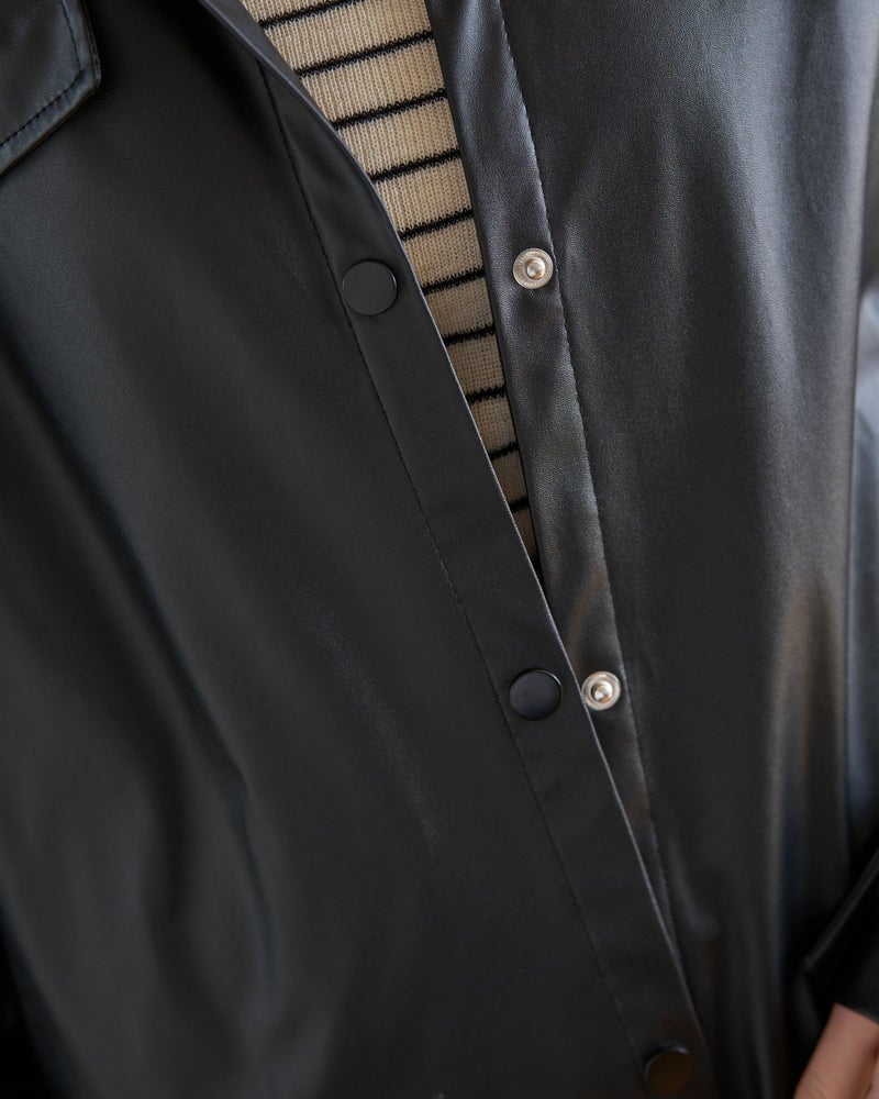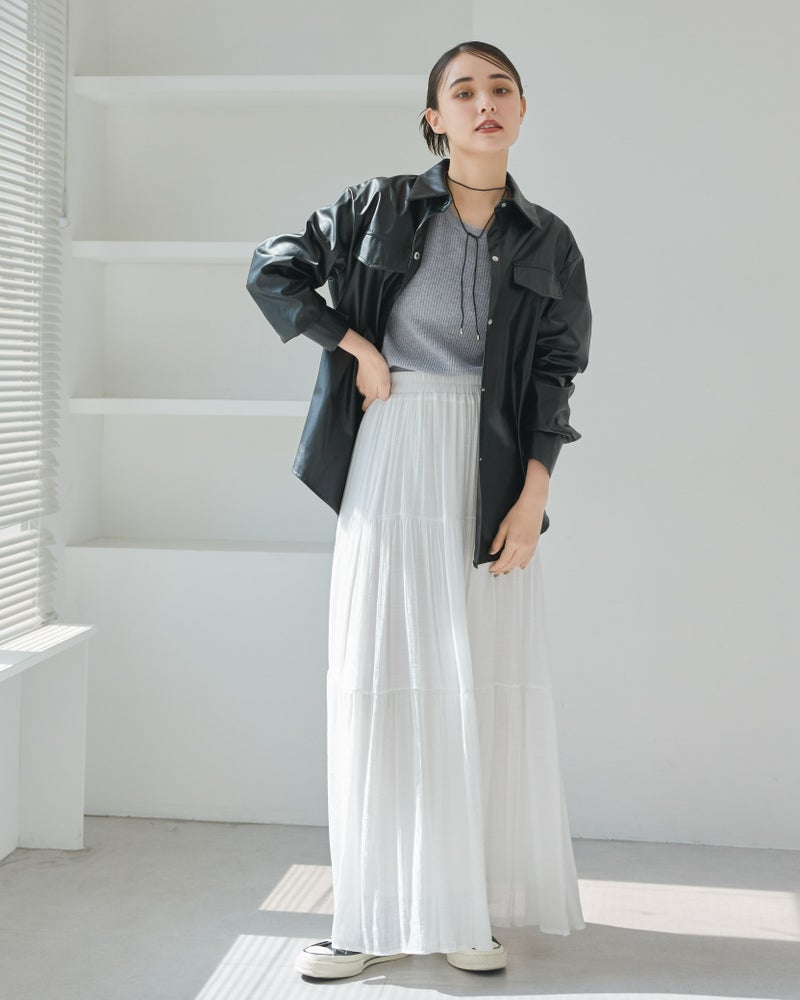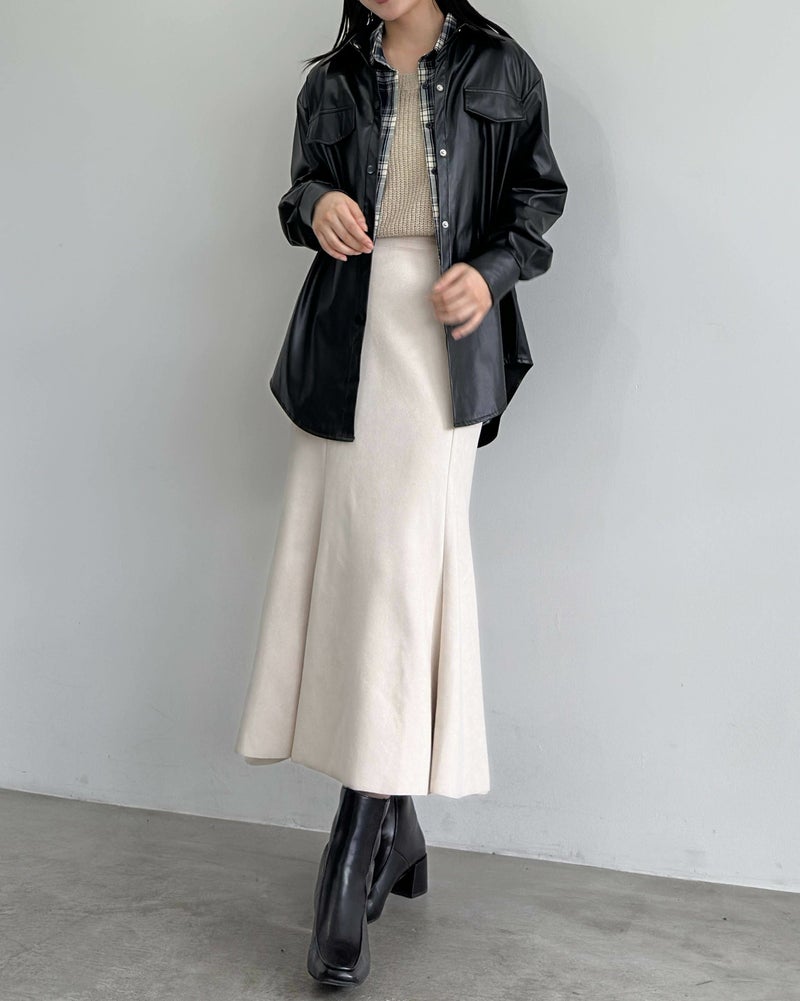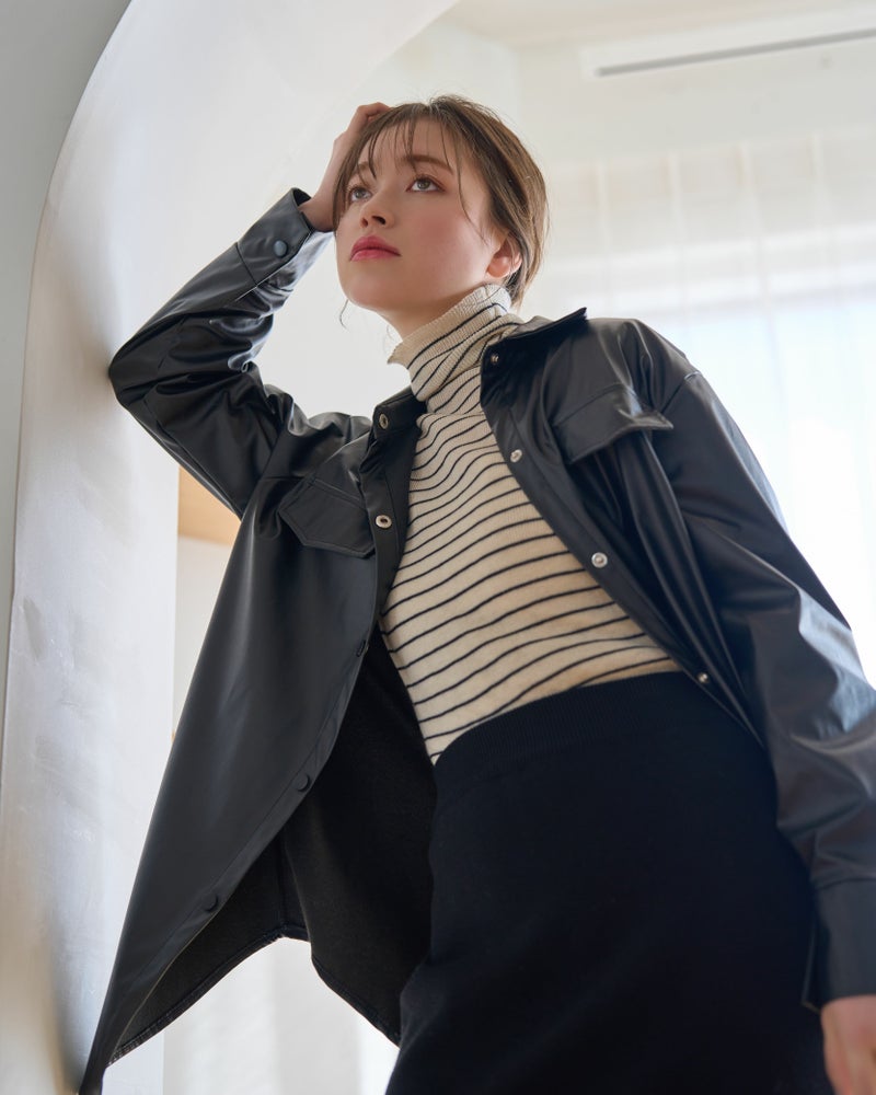 オーバーすぎない感じの着こなしになりました。アウターにしたりパーカーの下に着たり大活躍しそうです。フェイクレザーの臭いが気になって、臭いを飛ばすのに苦労しました。