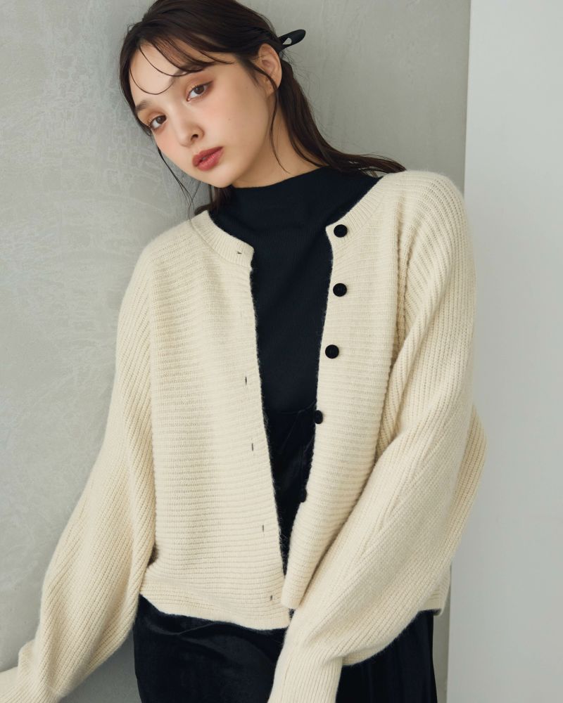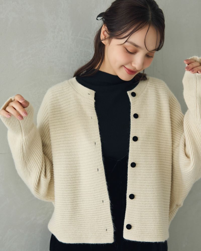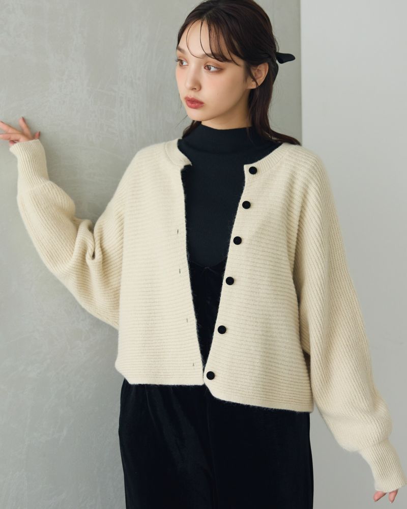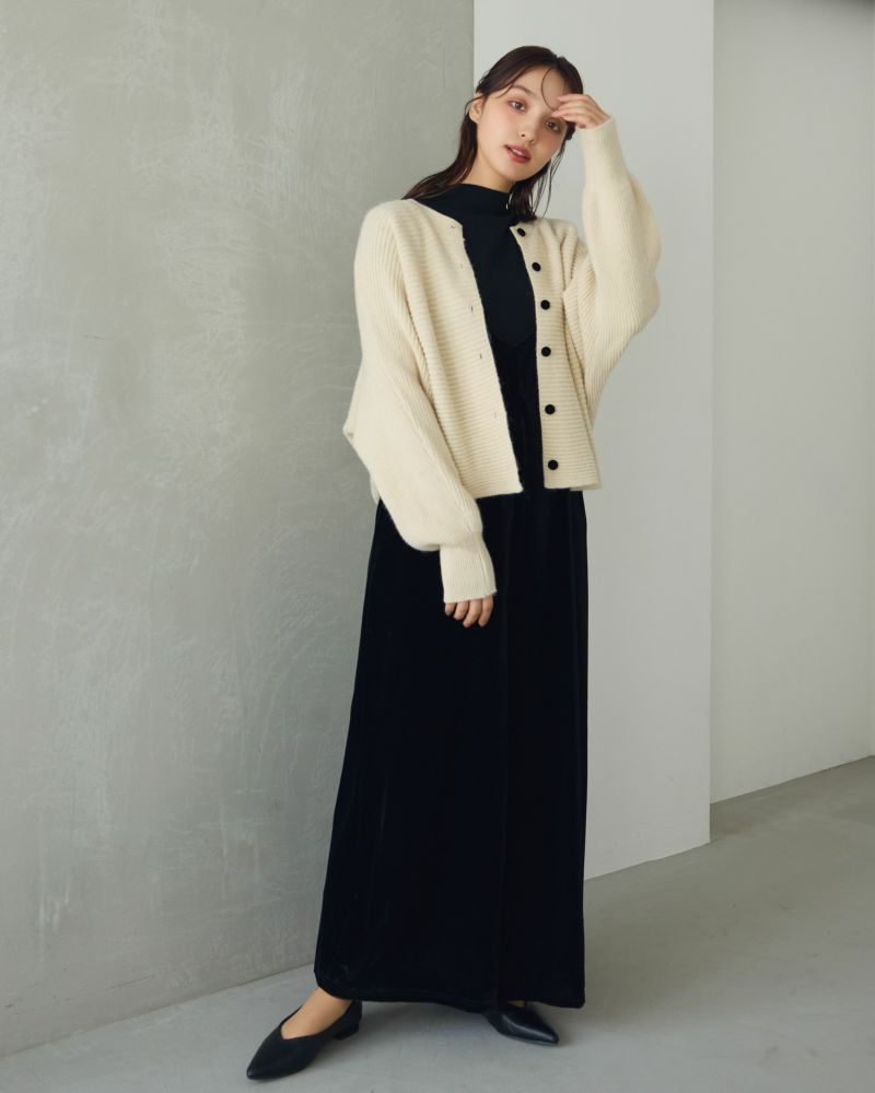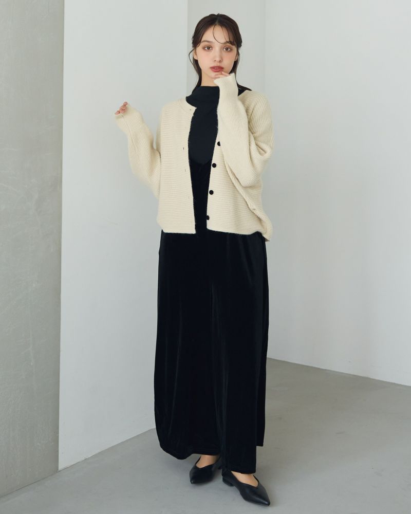 ベロアボタンラテカラーカーデ