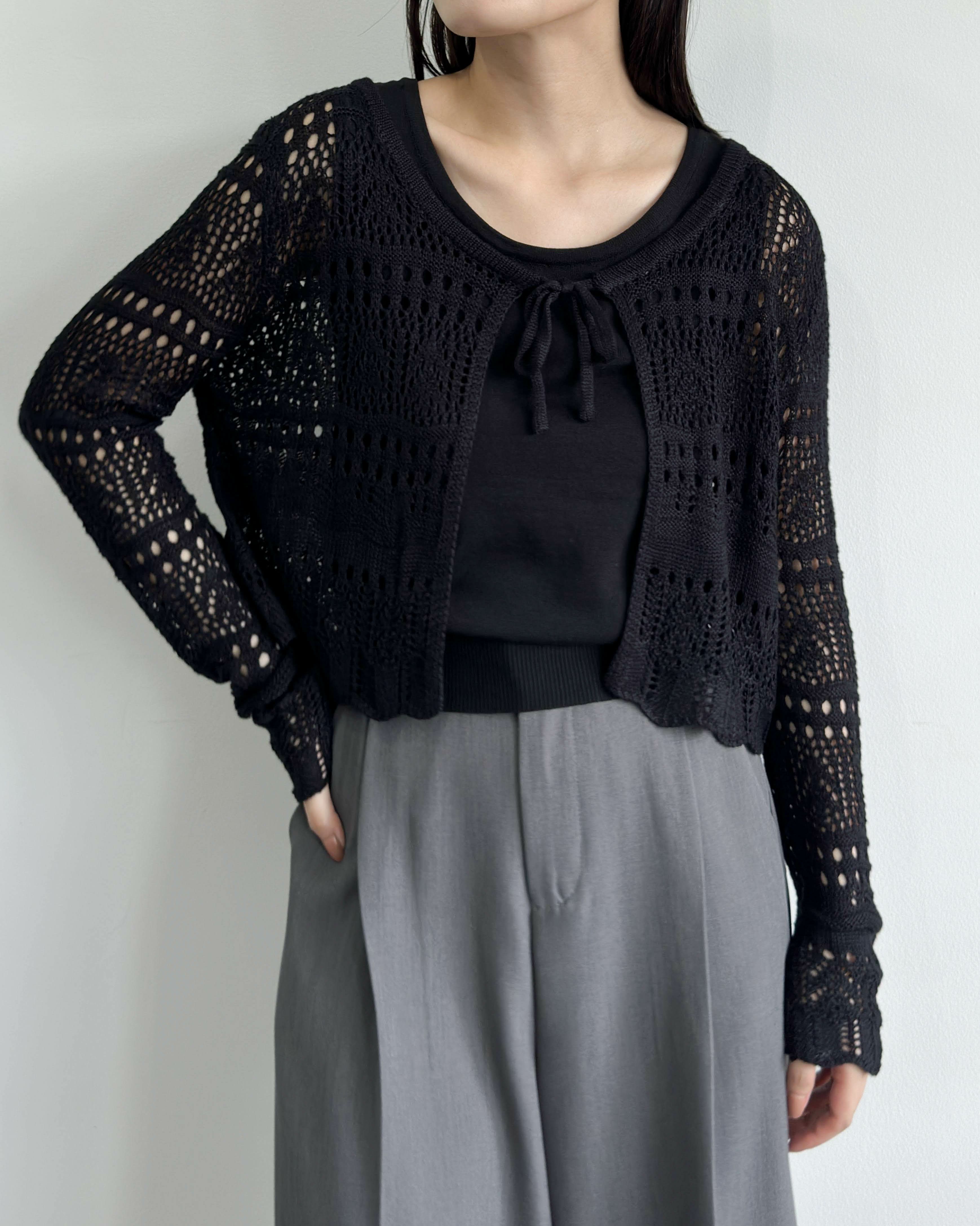 クルーネックスカラップカーデトップス