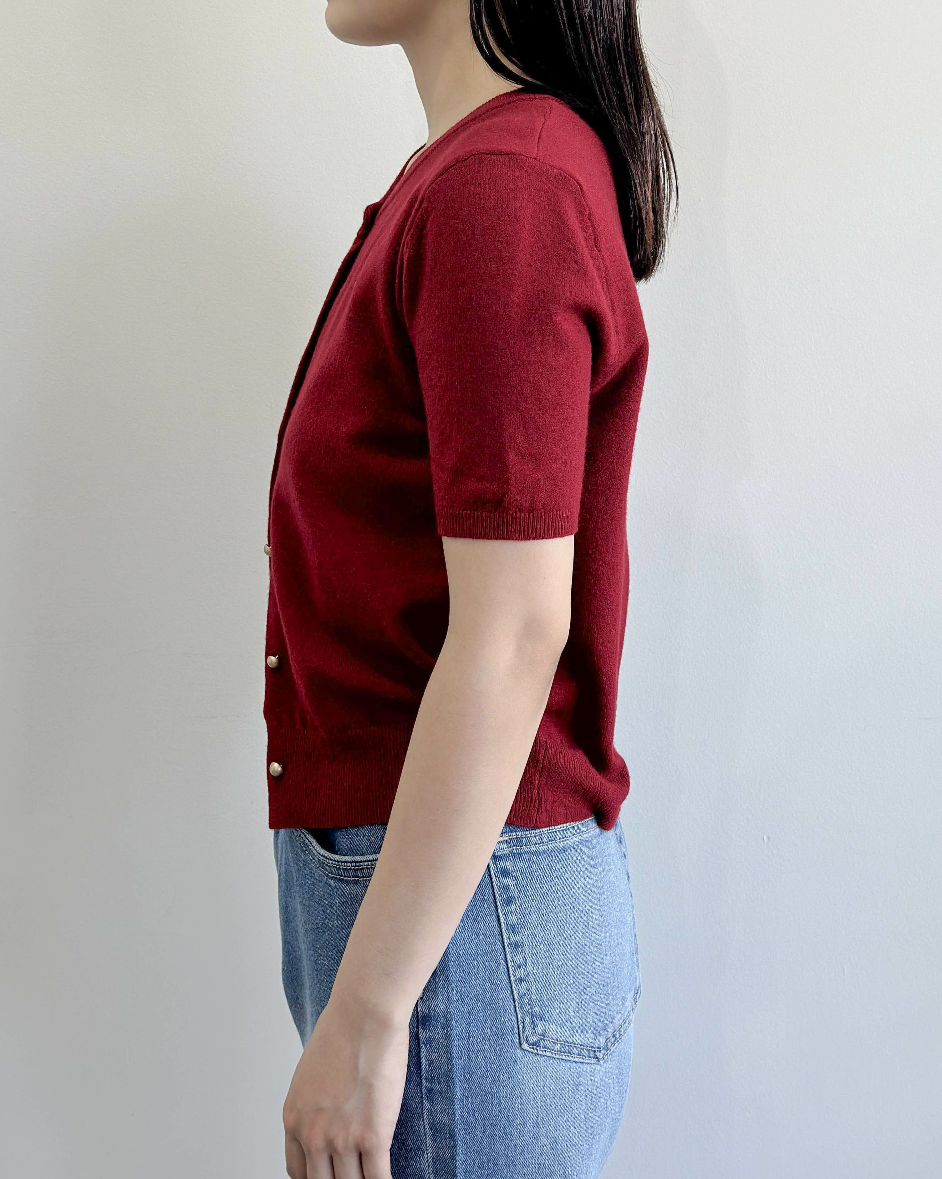 襟付き半袖ニットカーデ