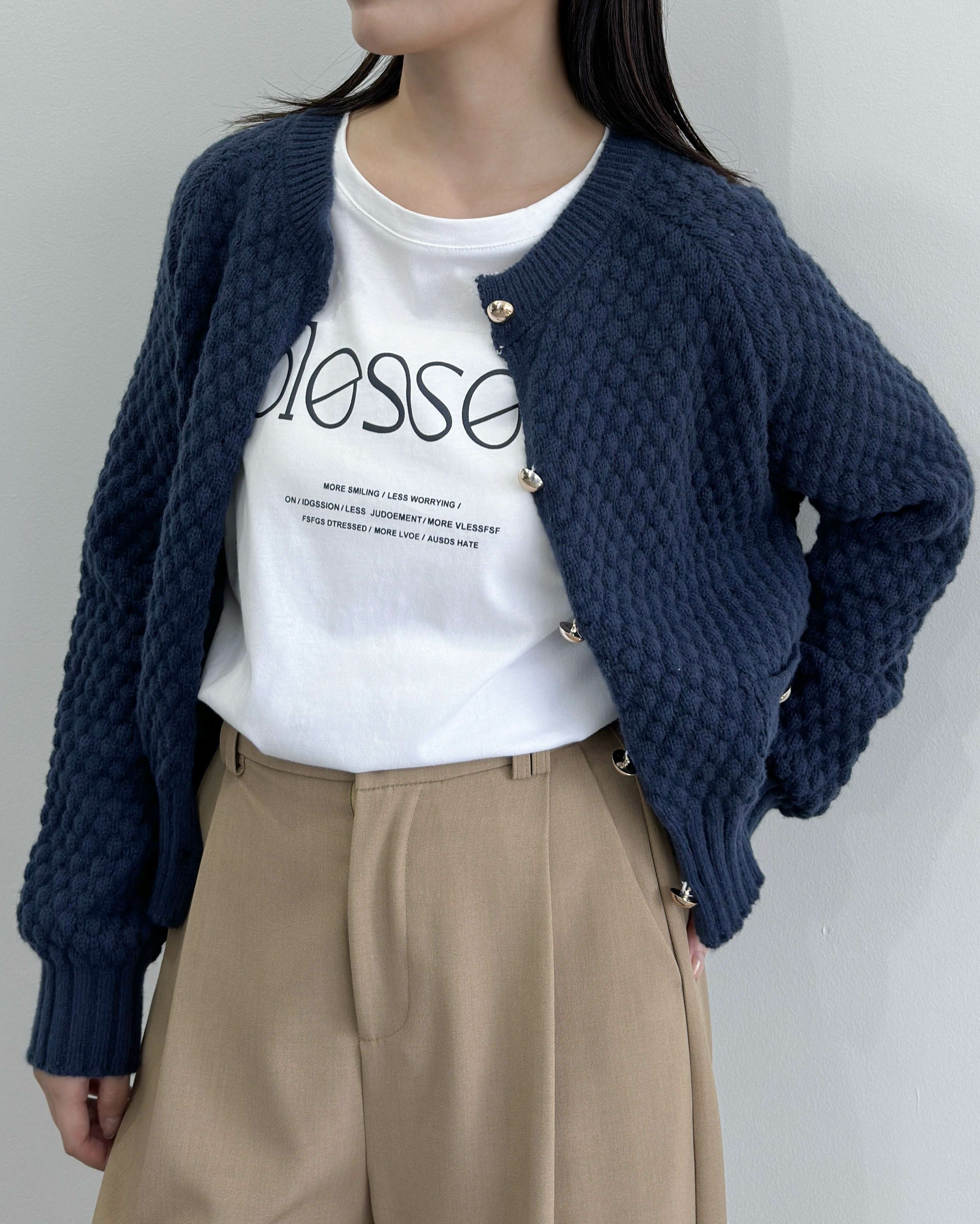 ぽこぽこ編み金ボタンカーデ