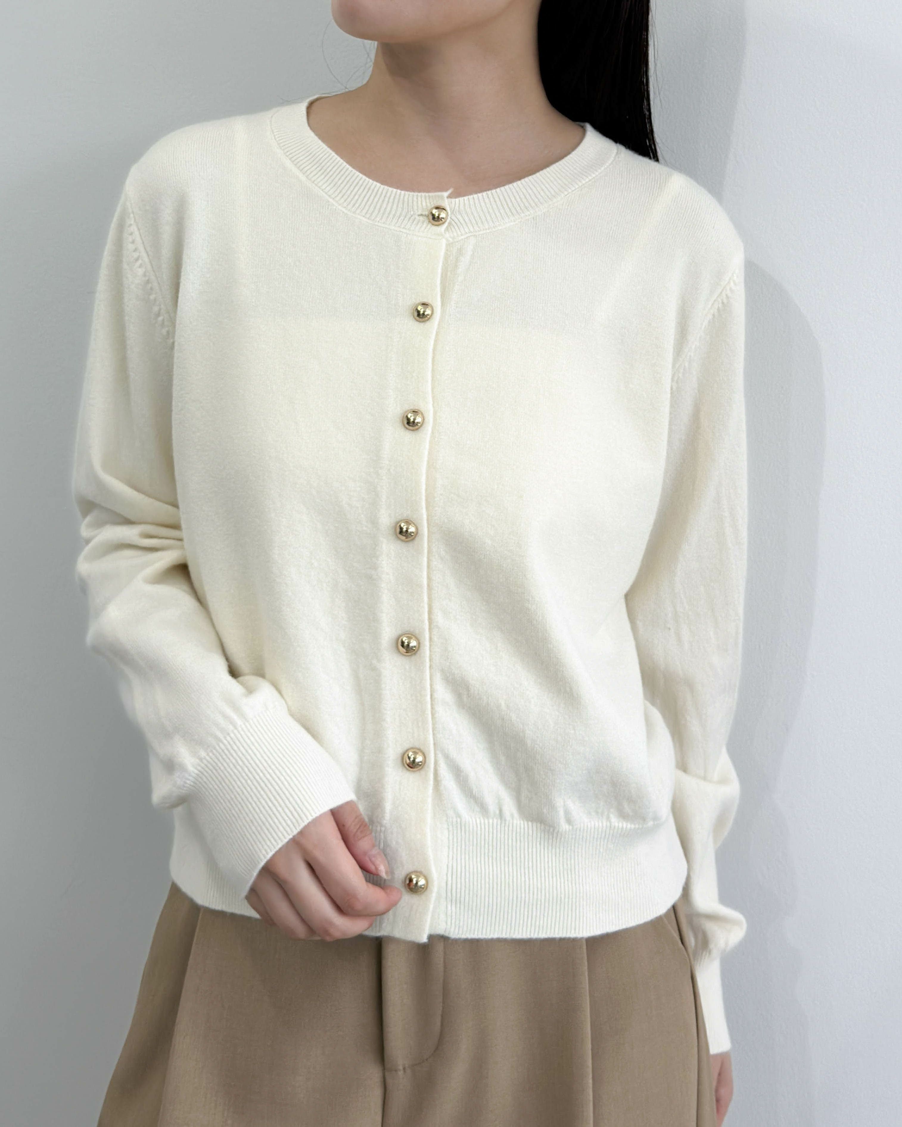 クルーネック金ボタンカーディガン