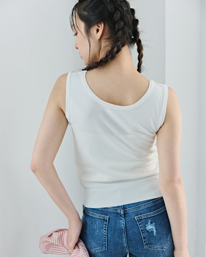 Uネックノースリタンクトップ