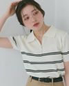 ボーダーハーフジップニットポロ