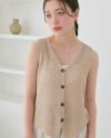 レイヤードキャミ付きポイントボタンニットノースリーブ