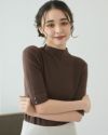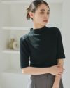 5分袖ボタンデザインボトルネックニット
