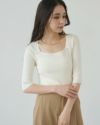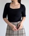 スクエアネック5分袖リブニット