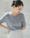 クルーネックリブ5分袖ニット