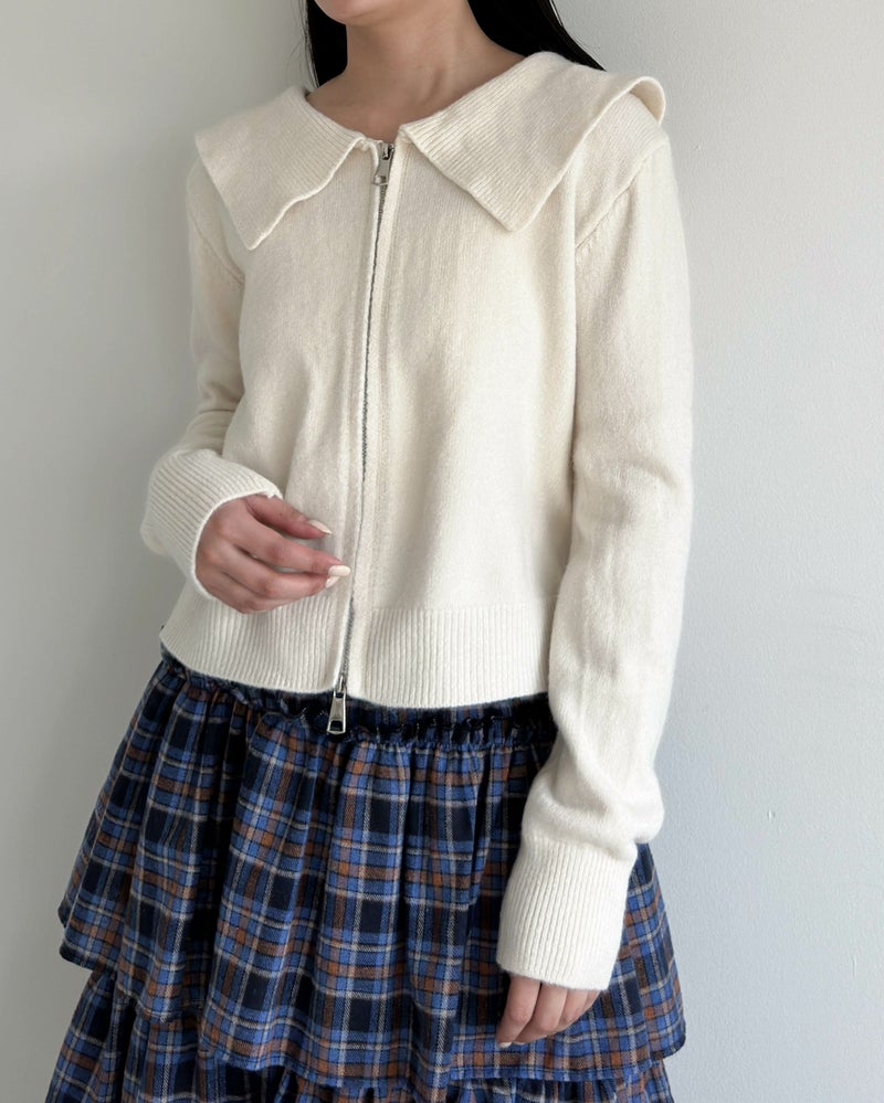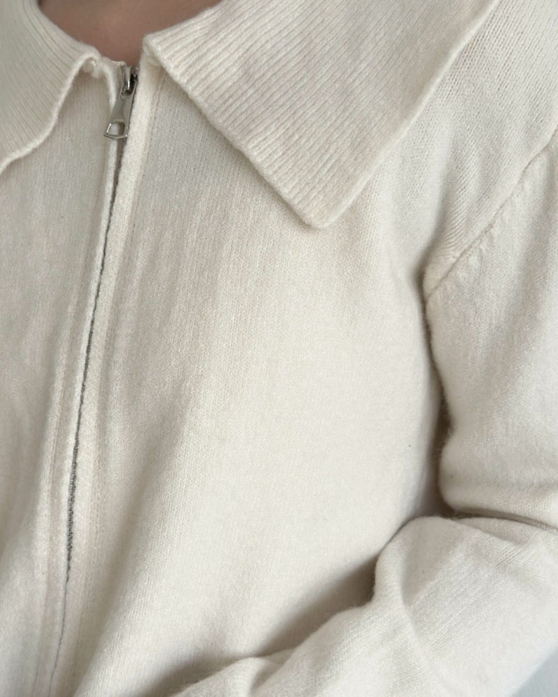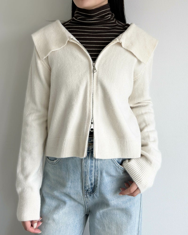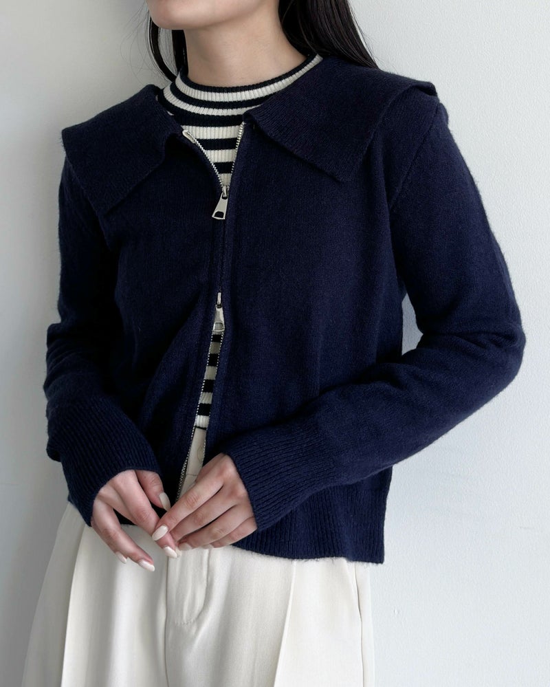 ダブルジップ襟付きニット