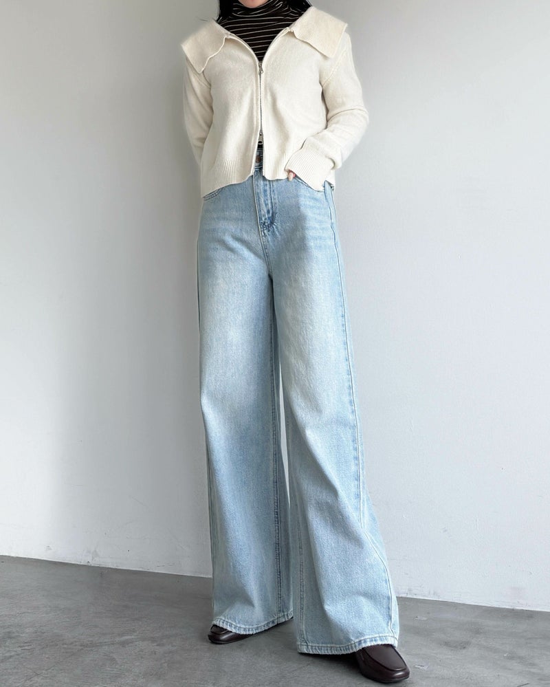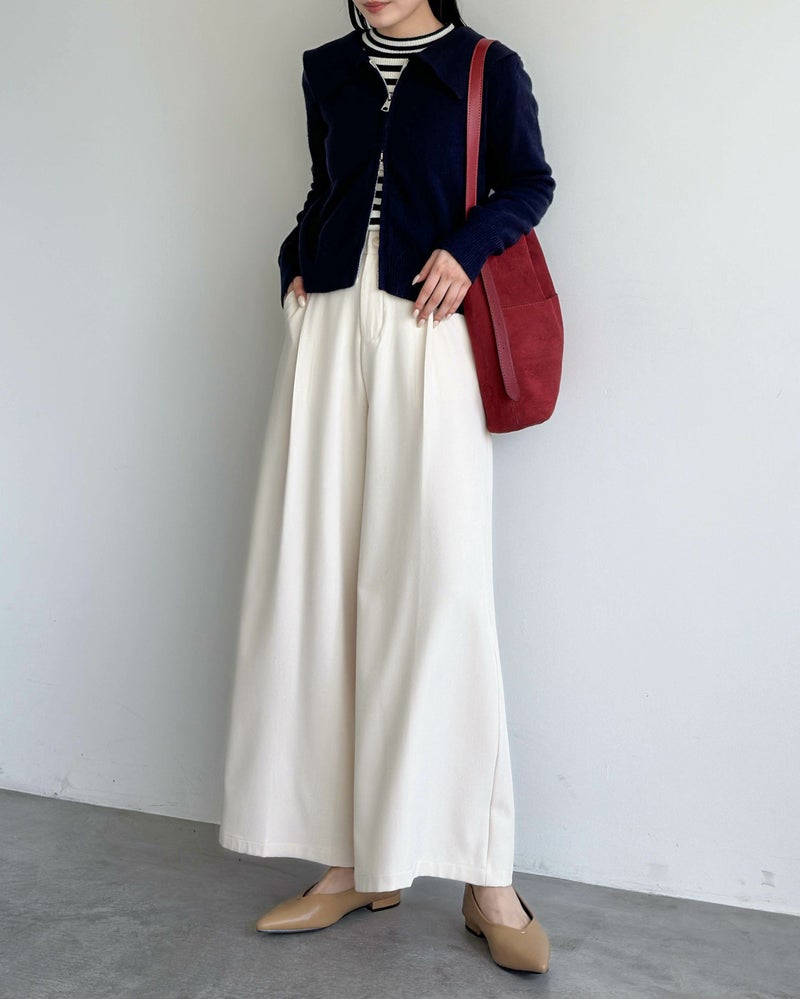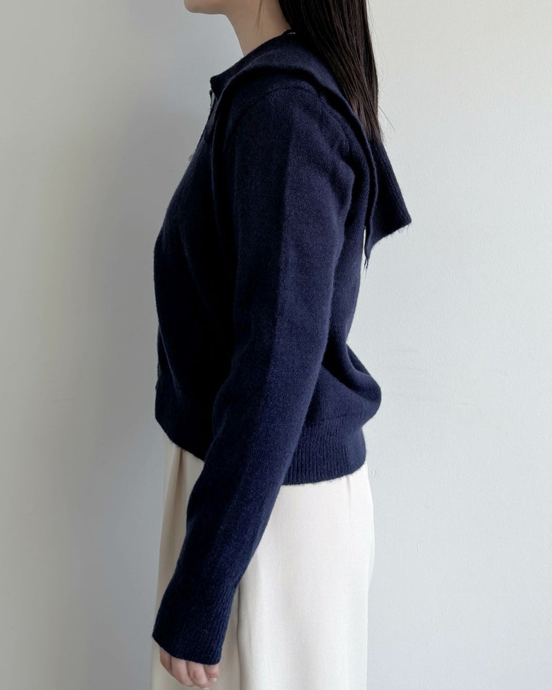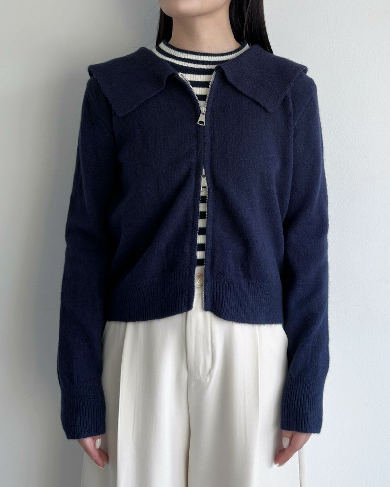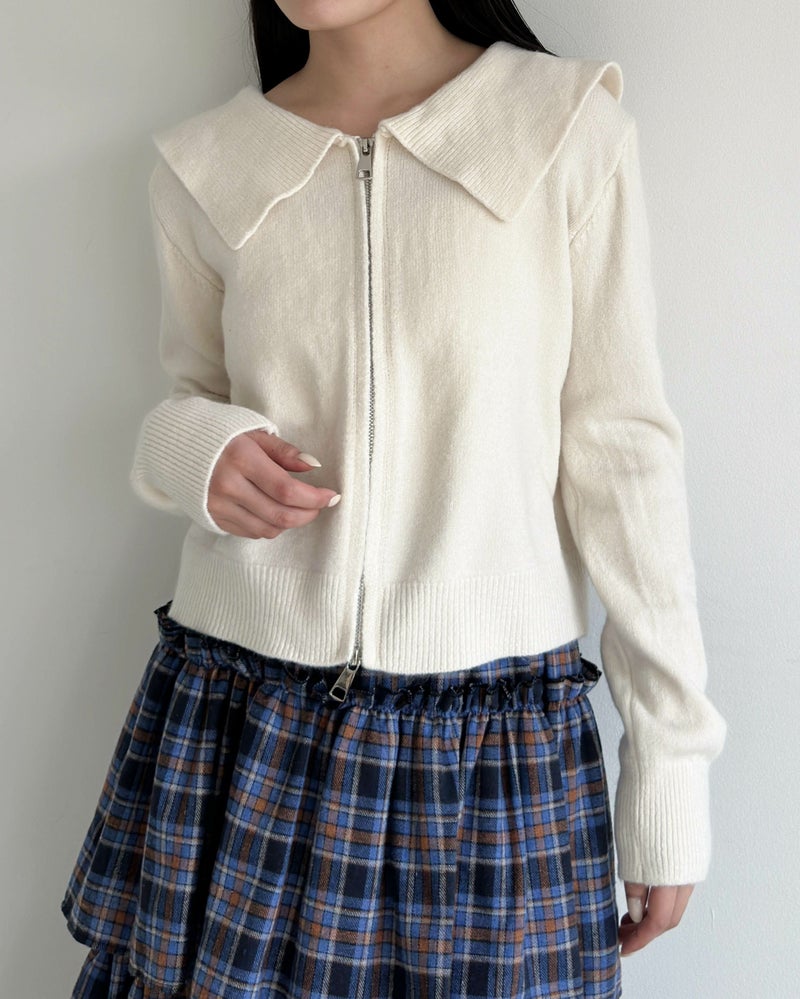 ダブルジップ襟付きニット
