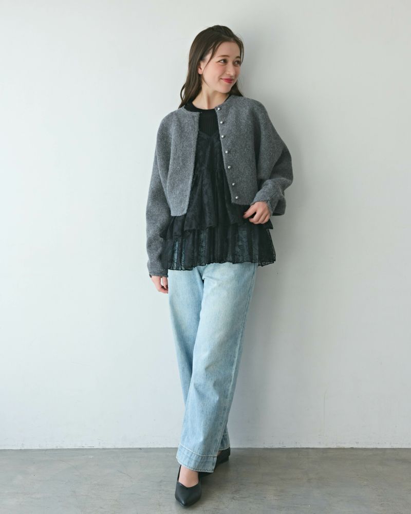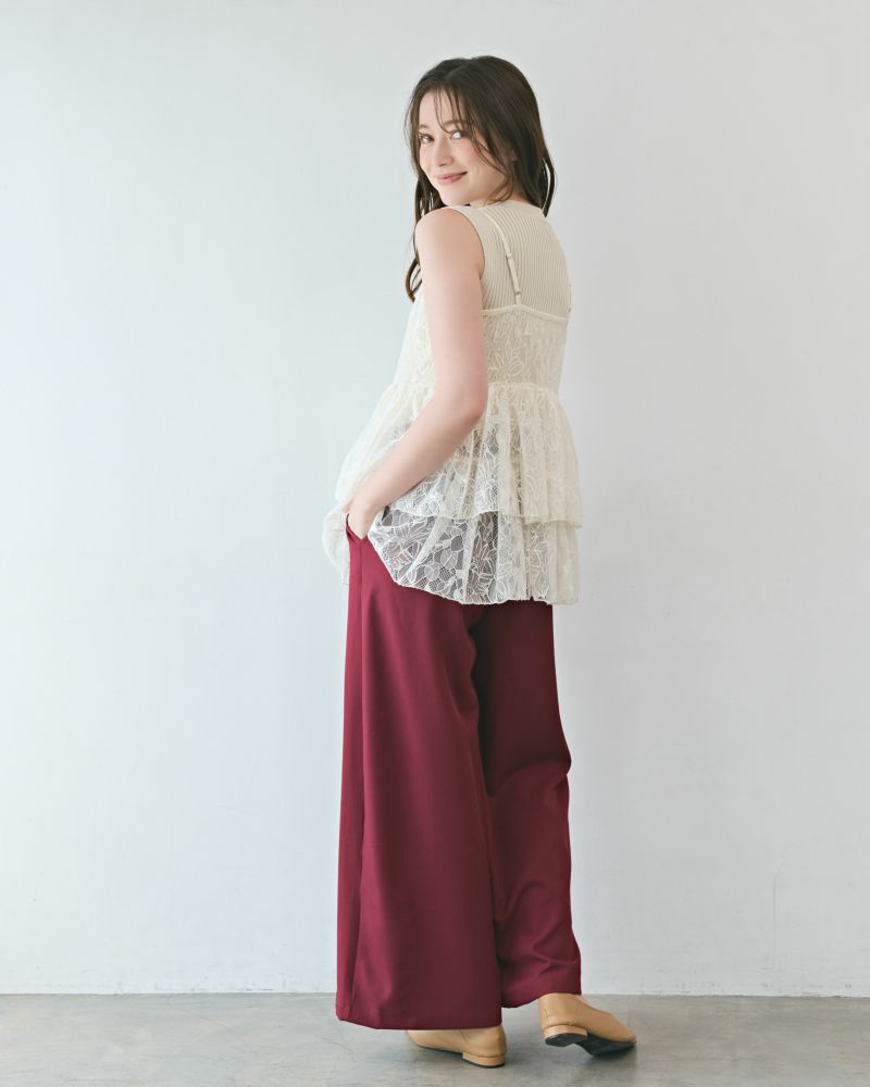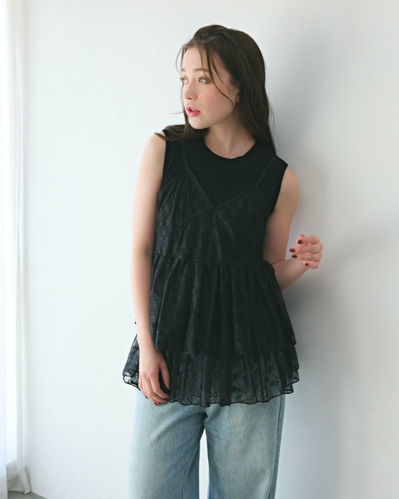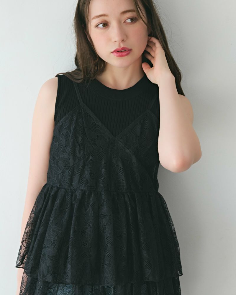 ティアードレースキャミ&リブニットセット