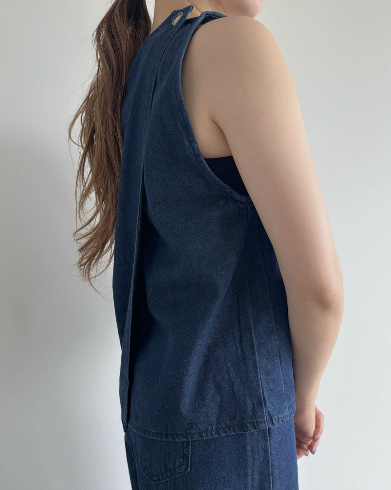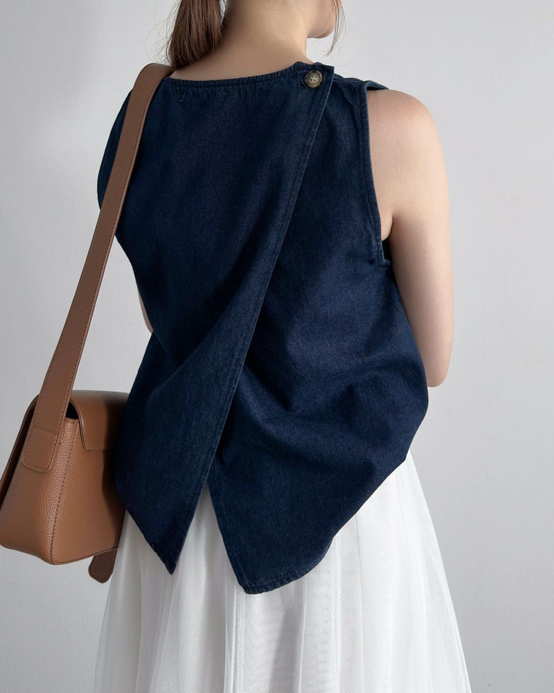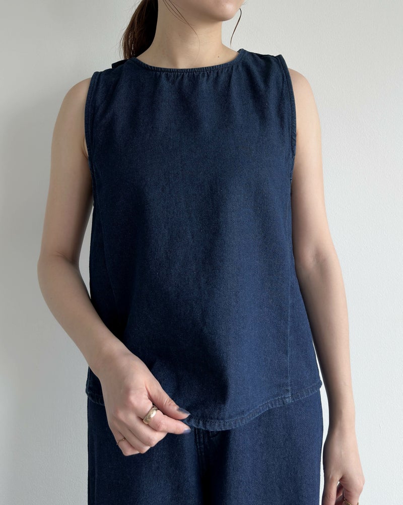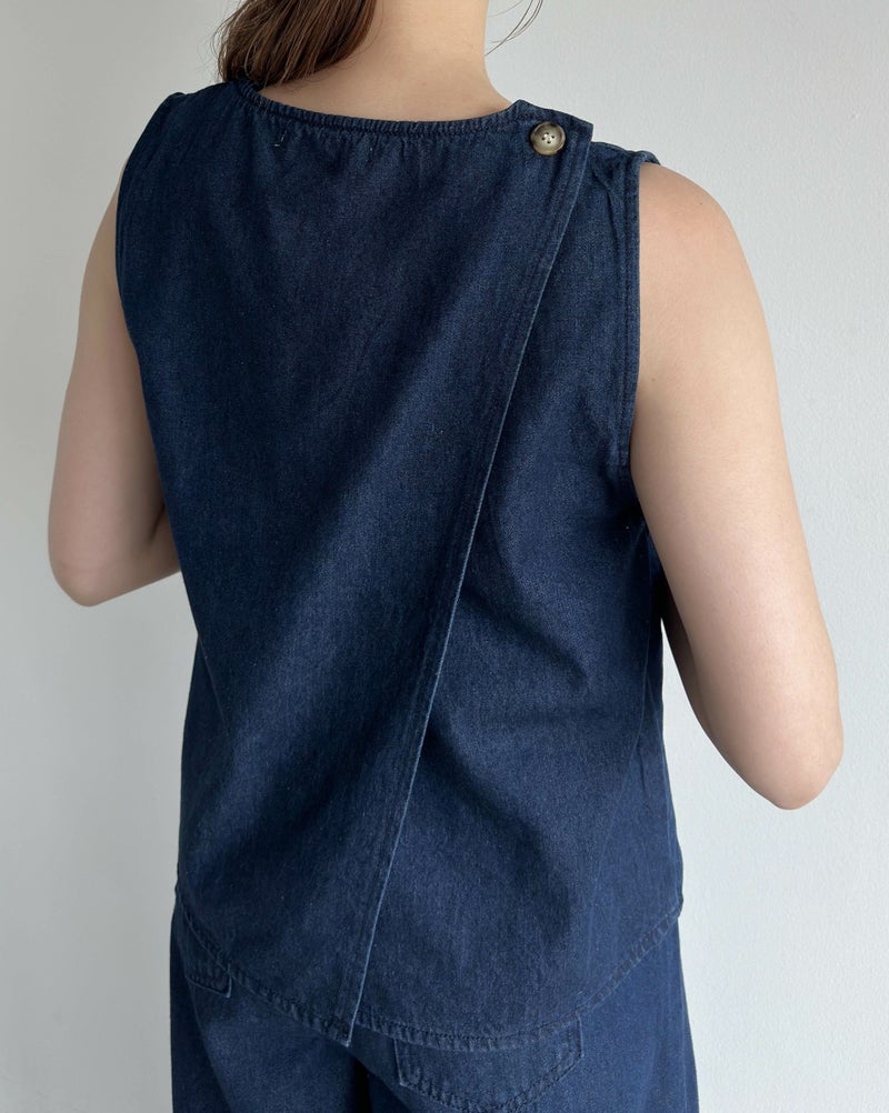 an chic ワンウォッシュバックデザインスリーブレストップス