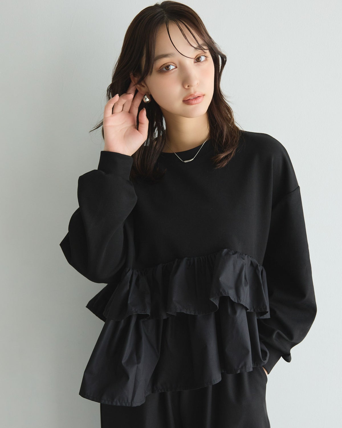 an chic ウエストフリルプルオーバー