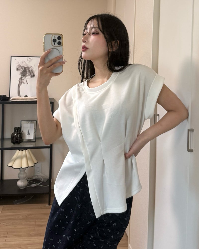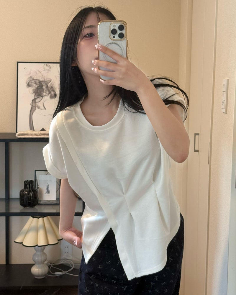 【ayano collab】マシュマロタッチフロントツータックデザインTシャツ