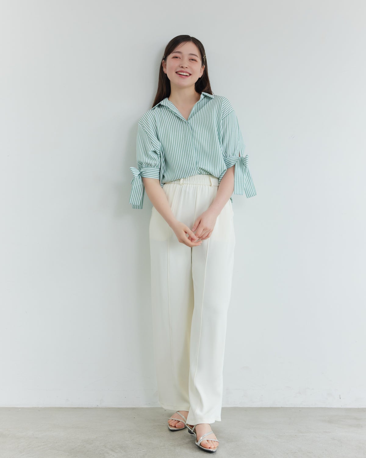 他の画像を見る an chic リボンスリーブストライプカラーシャツ 通常価格 ¥ 3,300 販売価格 ¥ 3,300 税込 販売期間 2026/04/22 12:00 〜 カートに入れる お気に入りに登録する