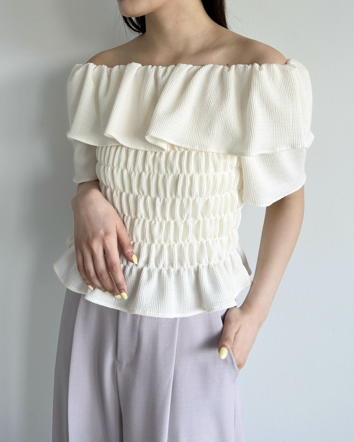 フリルネック2wayギャザーブラウス