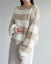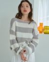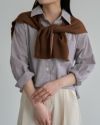 ショルダーパーツニット付きショート丈ストライプシャツ