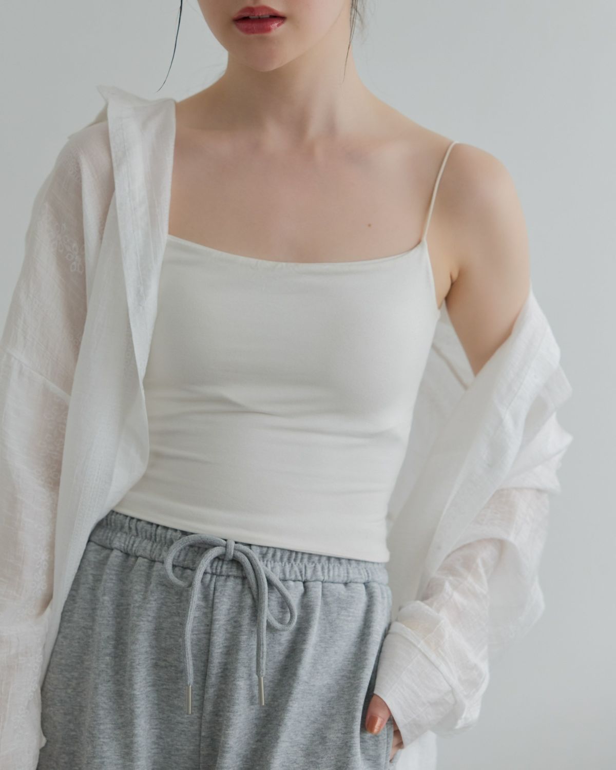 スパゲティショルダーカップ付きクロップドキャミソール
