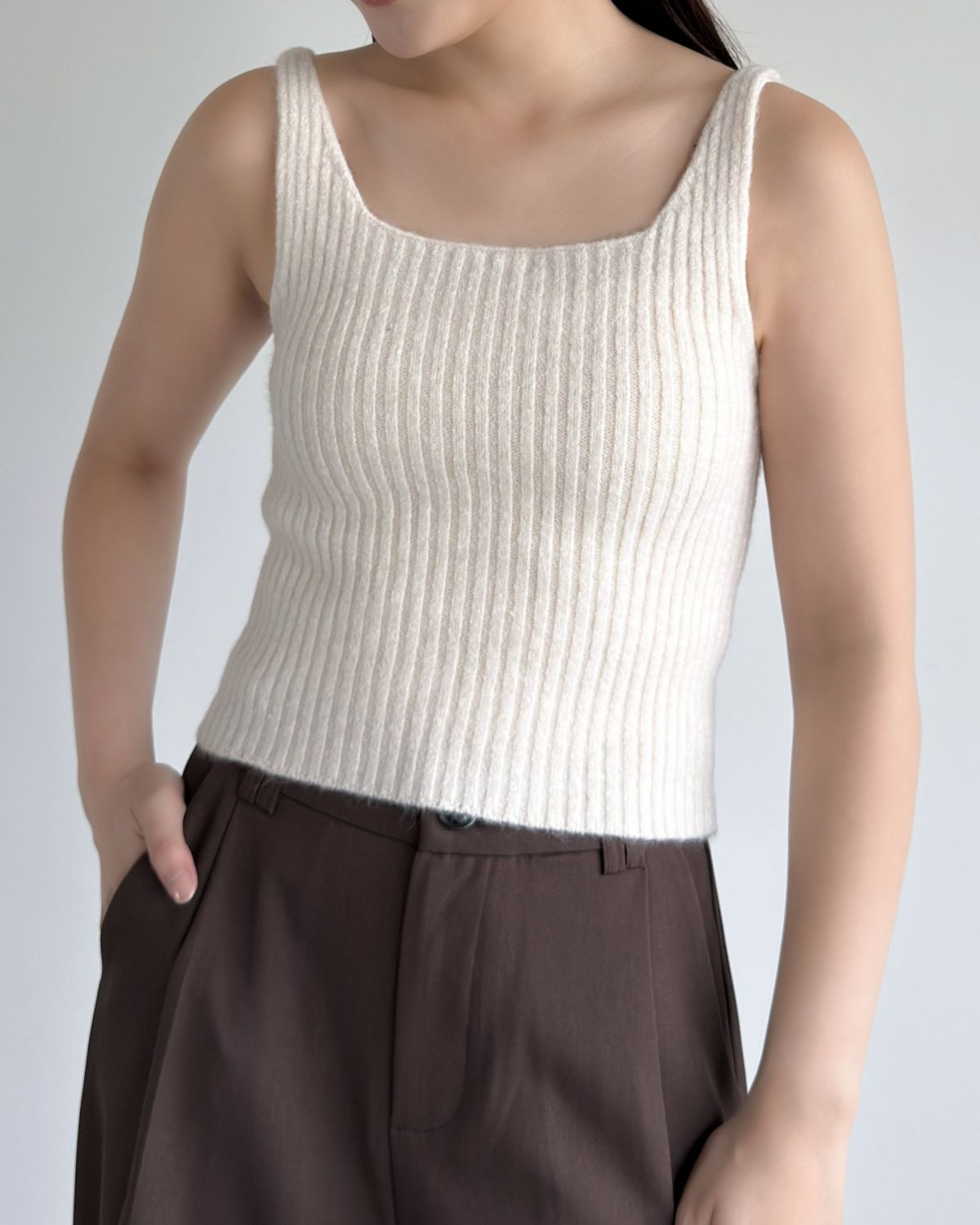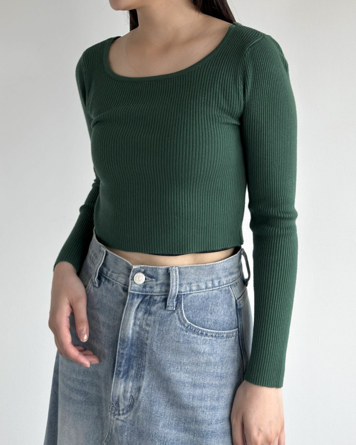 Uネッククロップド丈リブニット