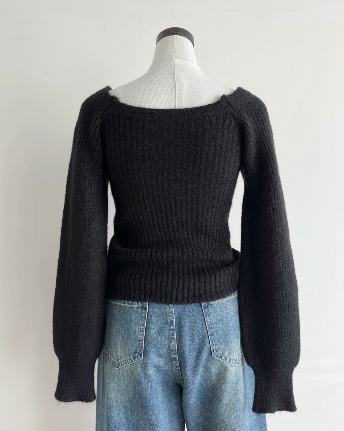 スクエアネックぽわん袖ニット