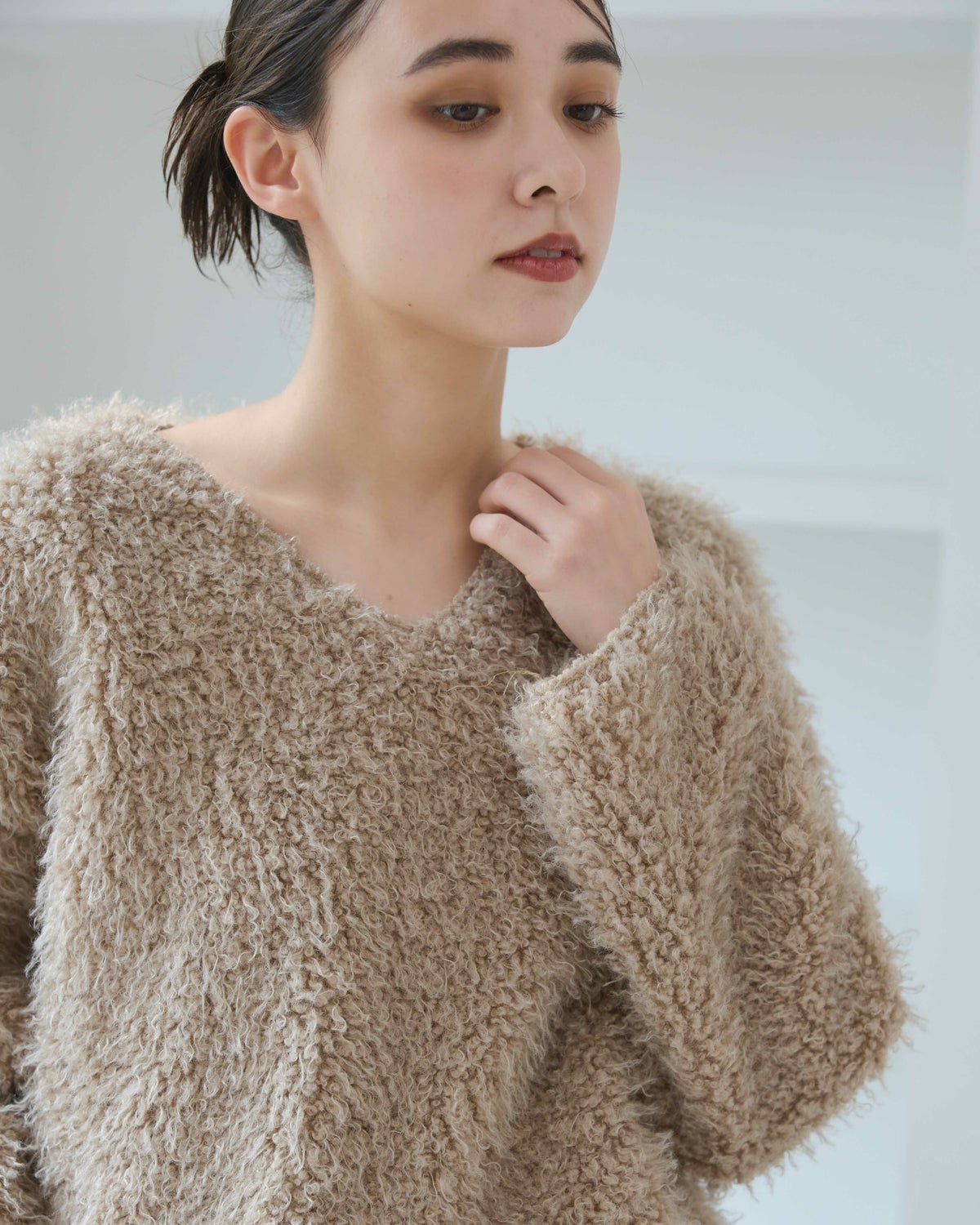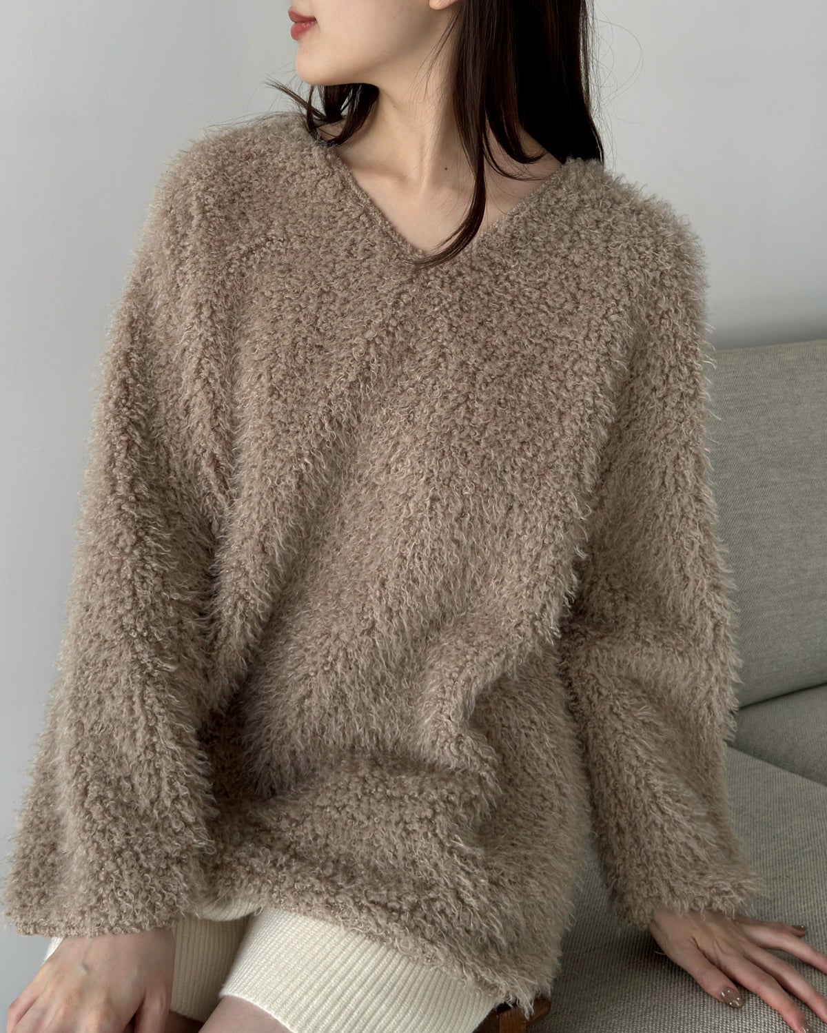 Vネックモンスターニット
