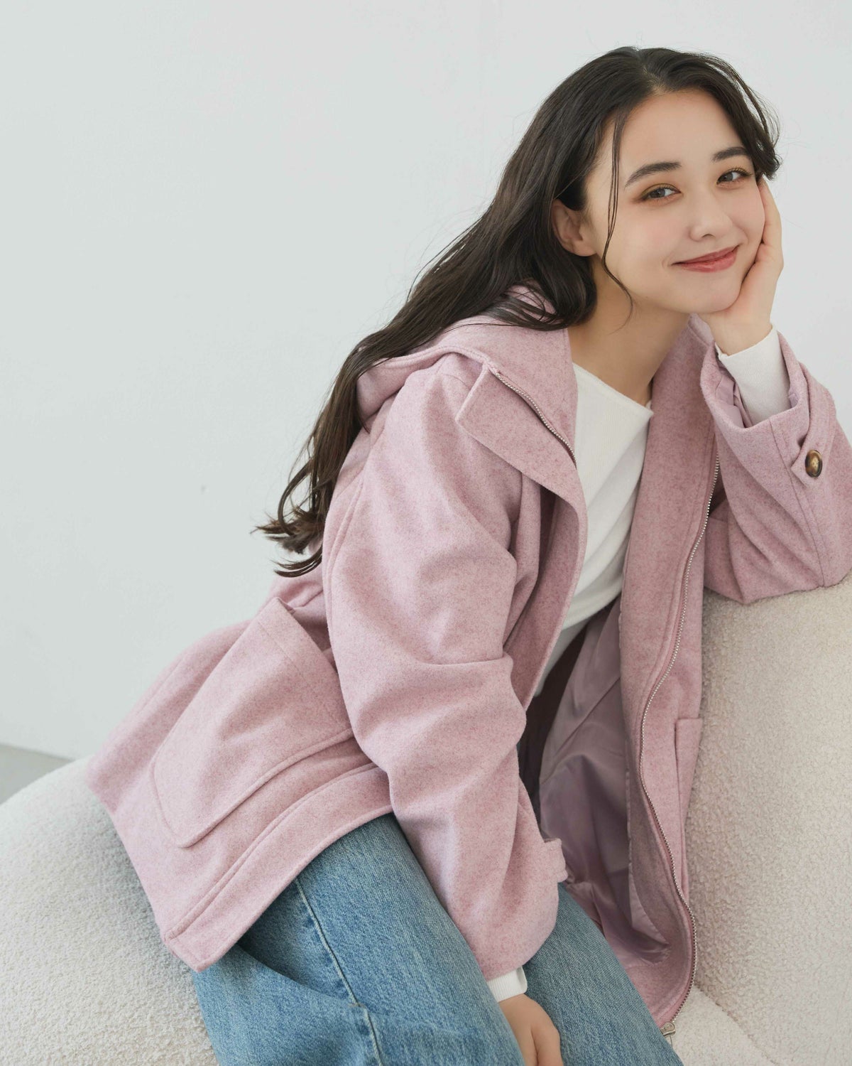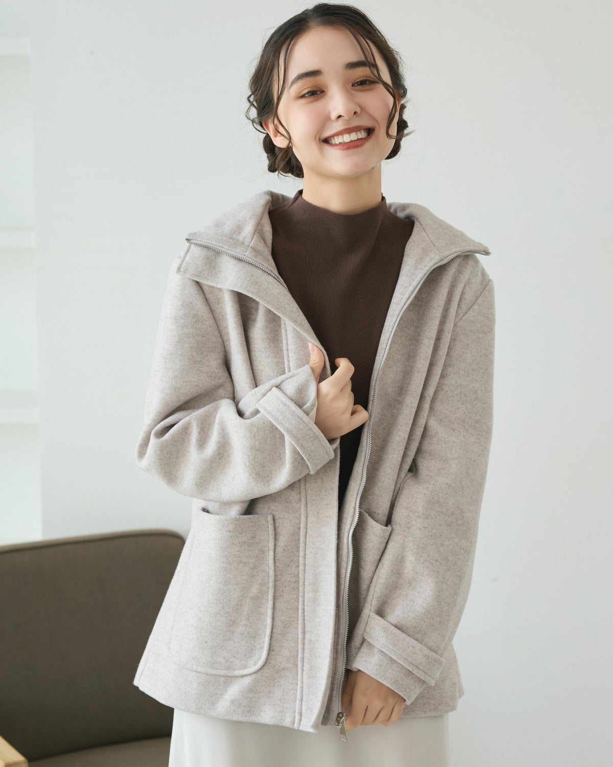 フード付きジップアップミドルコート