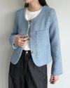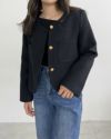 ゴールドボタンノーカラーツイードジャケット