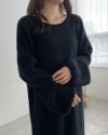 スクエアネックぽわん袖ニット