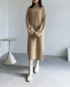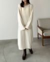 ぽわん袖ボートネックニットワンピース