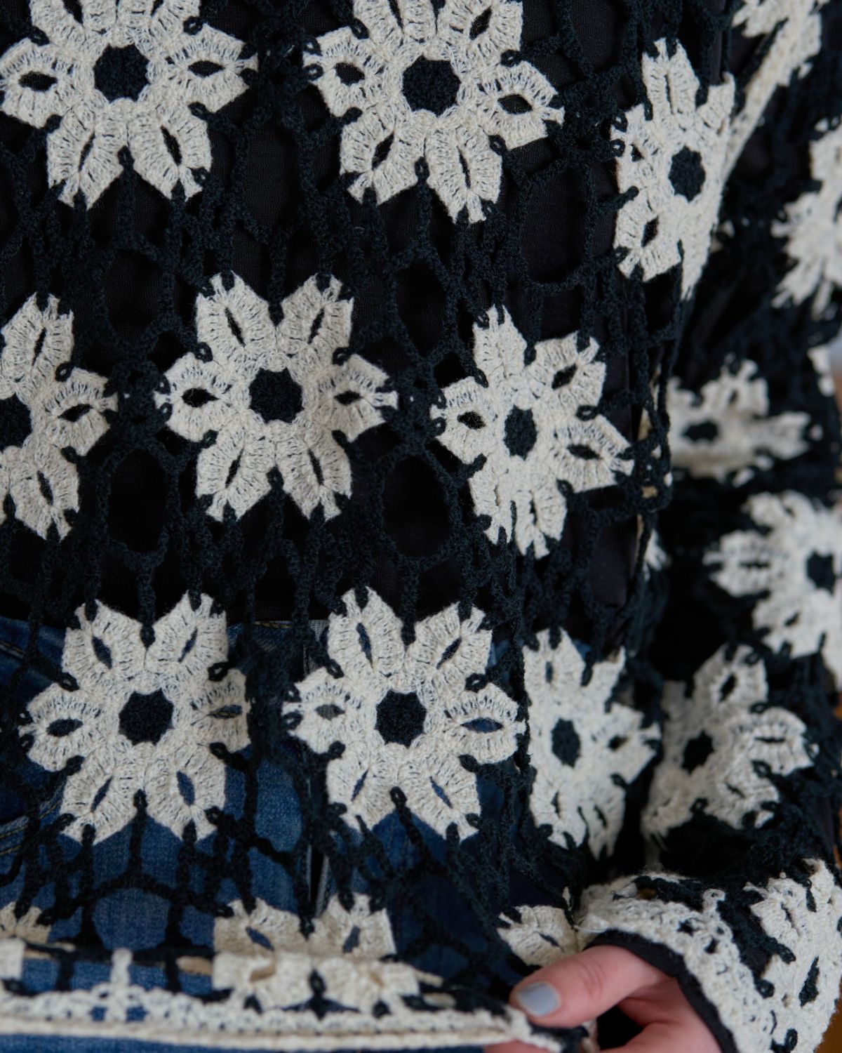鍵編みフラワープルオーバー