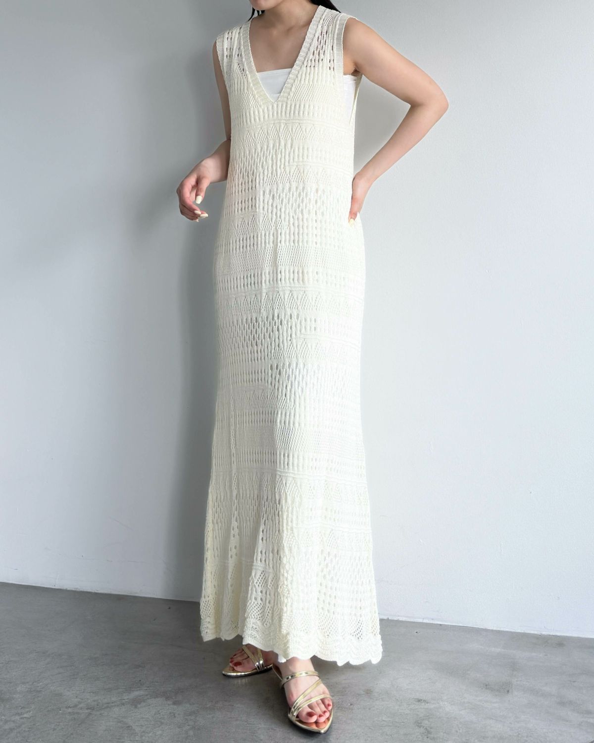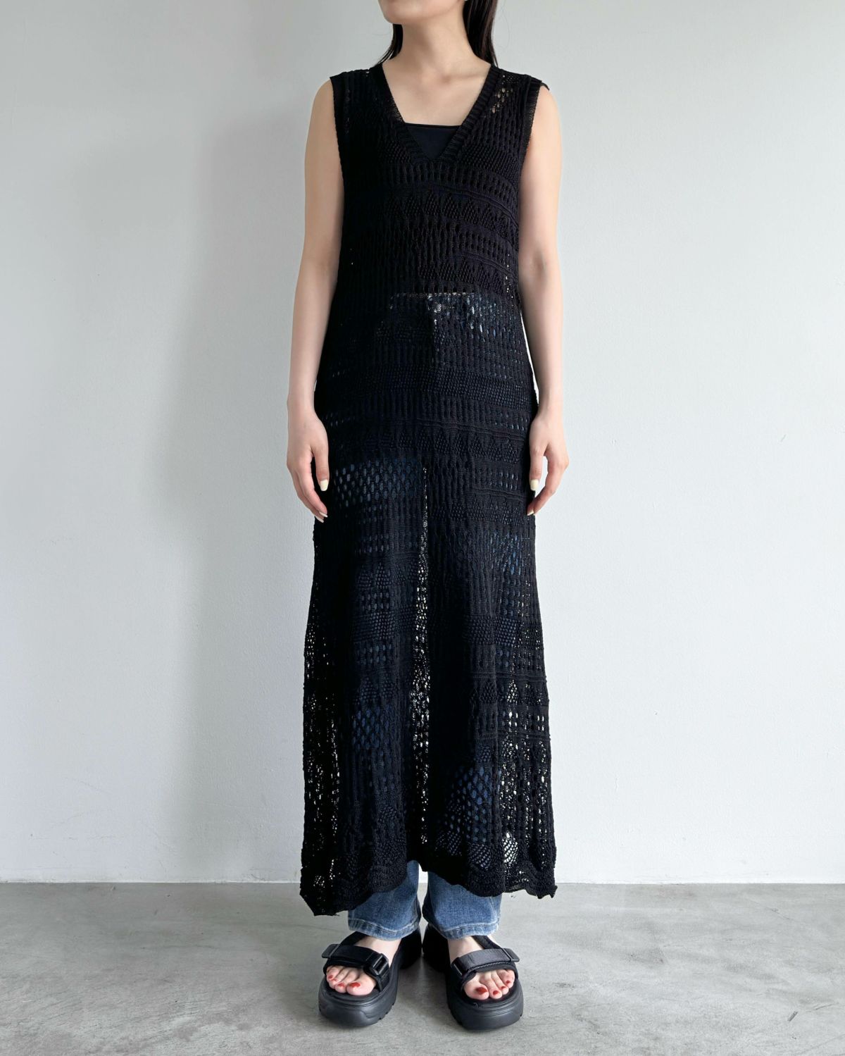 an chic 2way透かし編みオープンワンピース