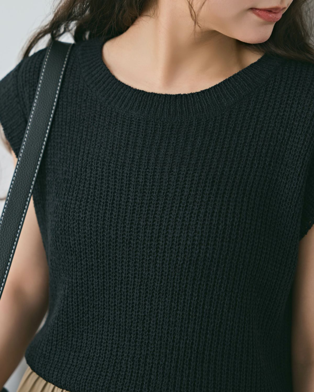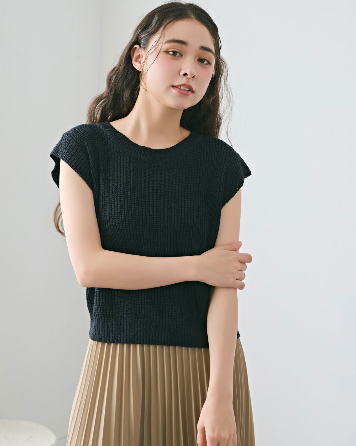 an chic あぜ編みフレンチスリーブニットトップス