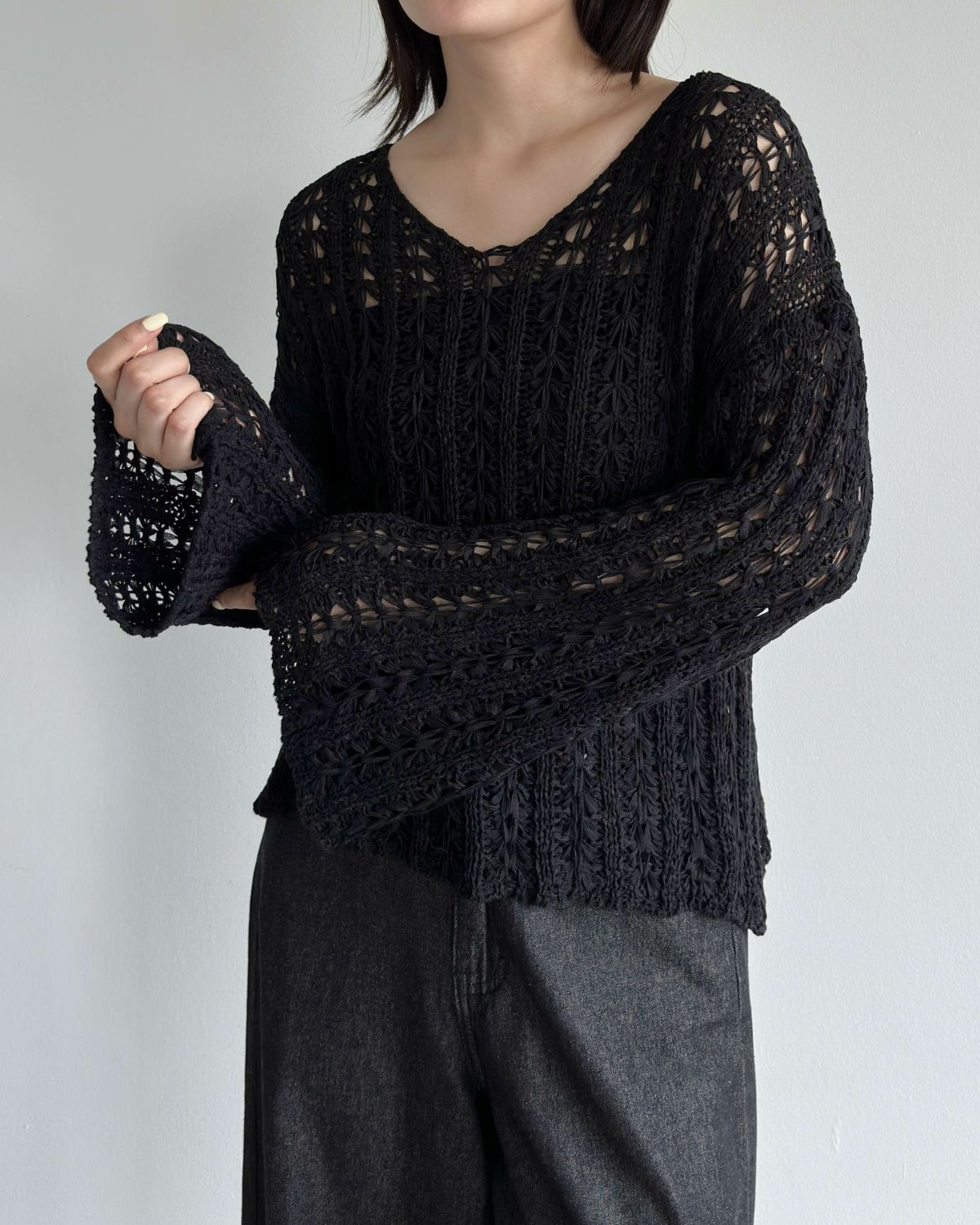 an chic 透かし編みフレンチスリーブニット