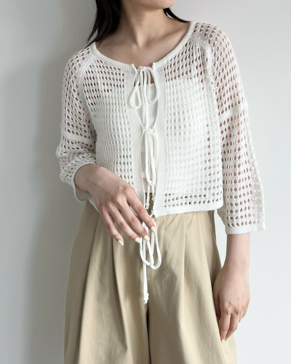 an chic 七分袖リボンカーディガン